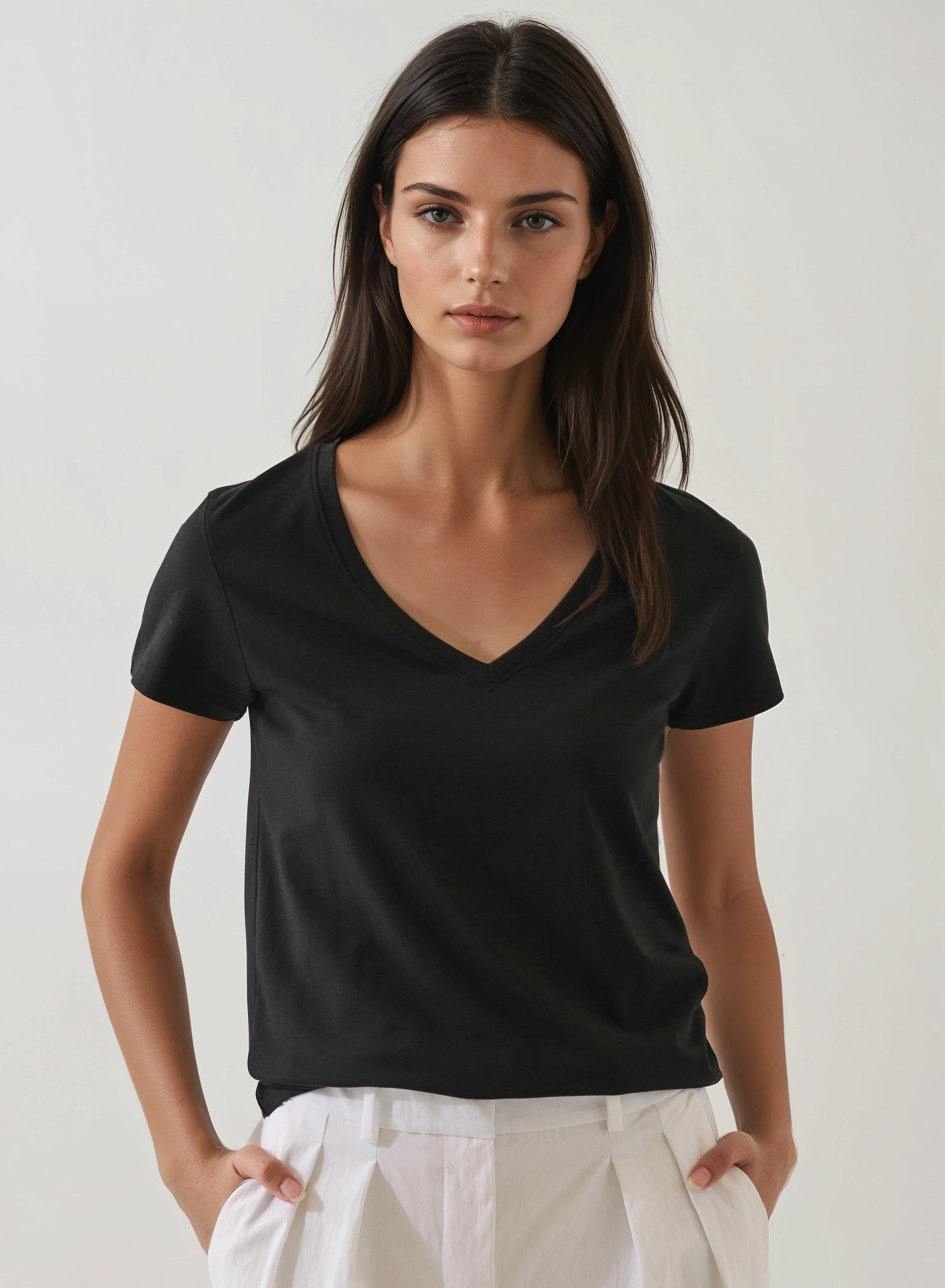 SHORT SLEEVE ICONIC PIMA STRETCH FITTED V-NECK TEE