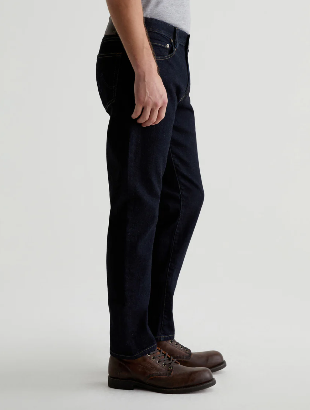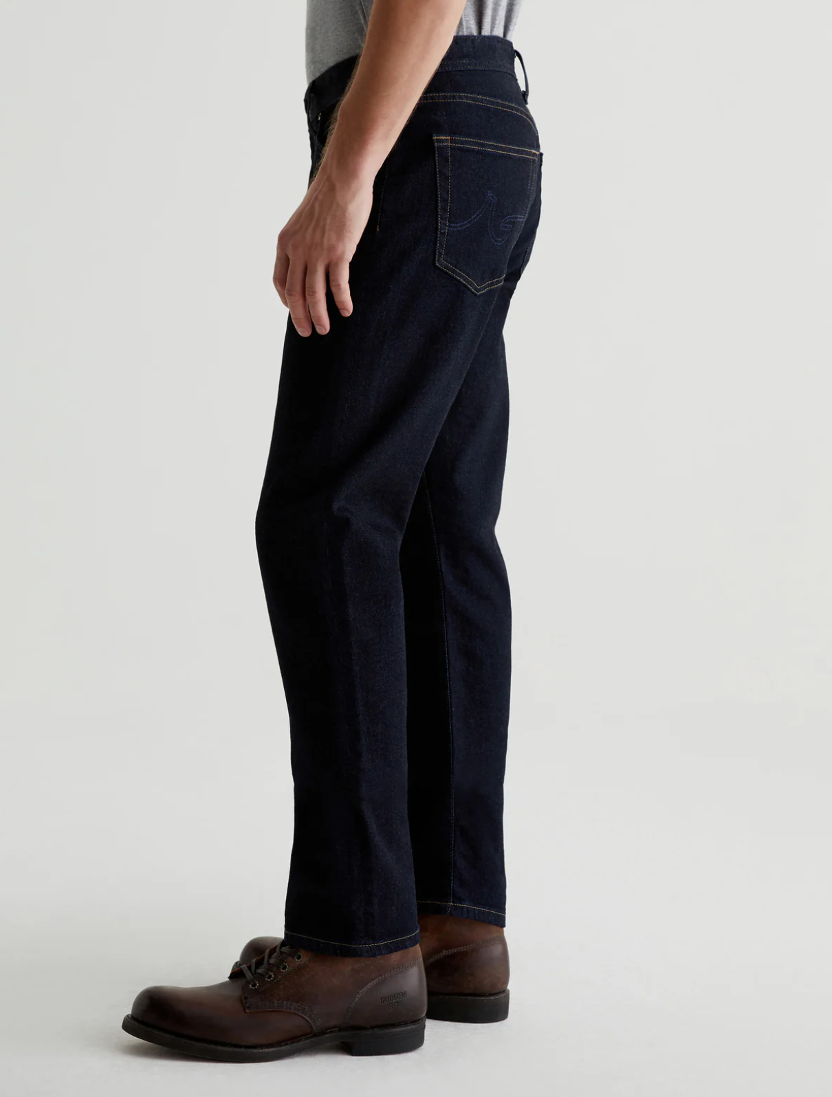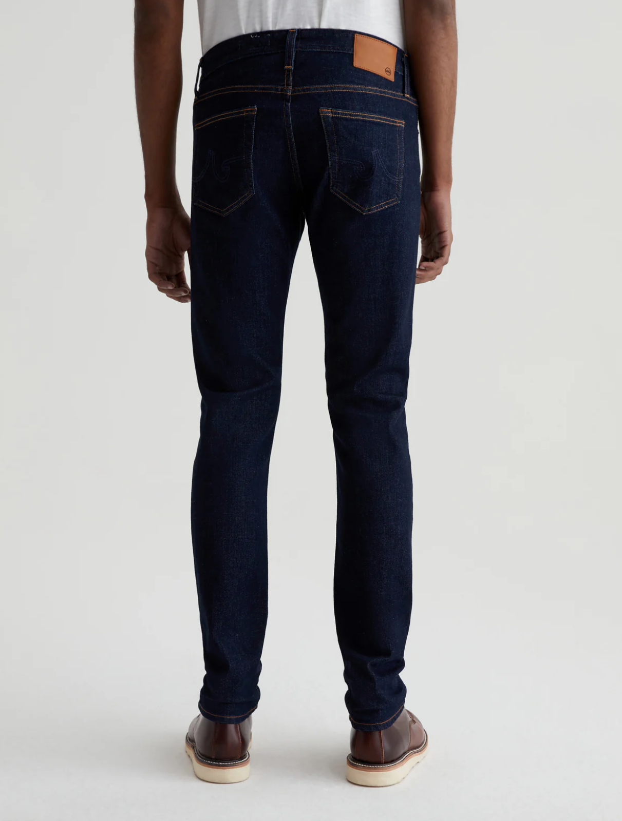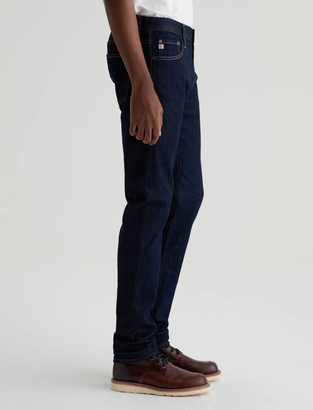 model wearing ag jeans dylan slim fit jean in 16 years el ray blue shown from the waist down