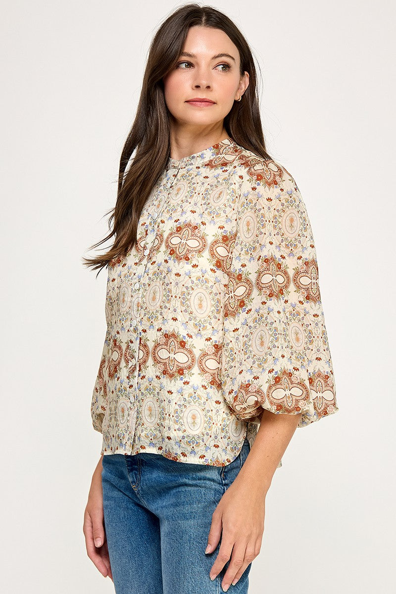 FOLK FLORAL PEASANT BLOUSE