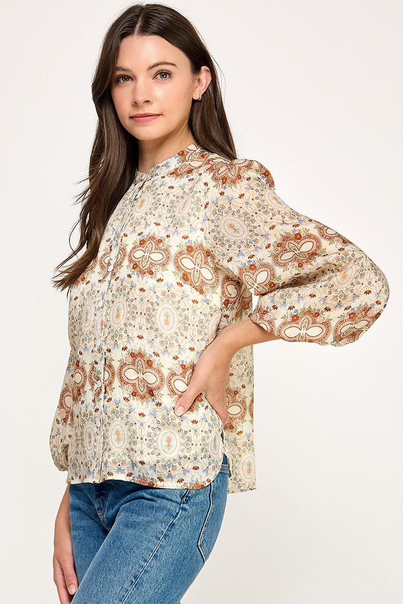 FLOWER MOSAIC GEO LONG SLEEVE SHIRT