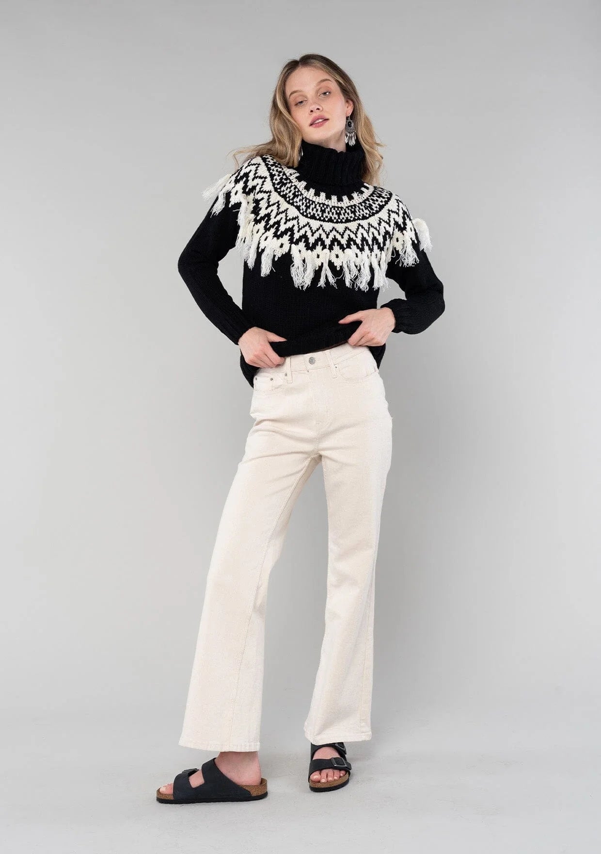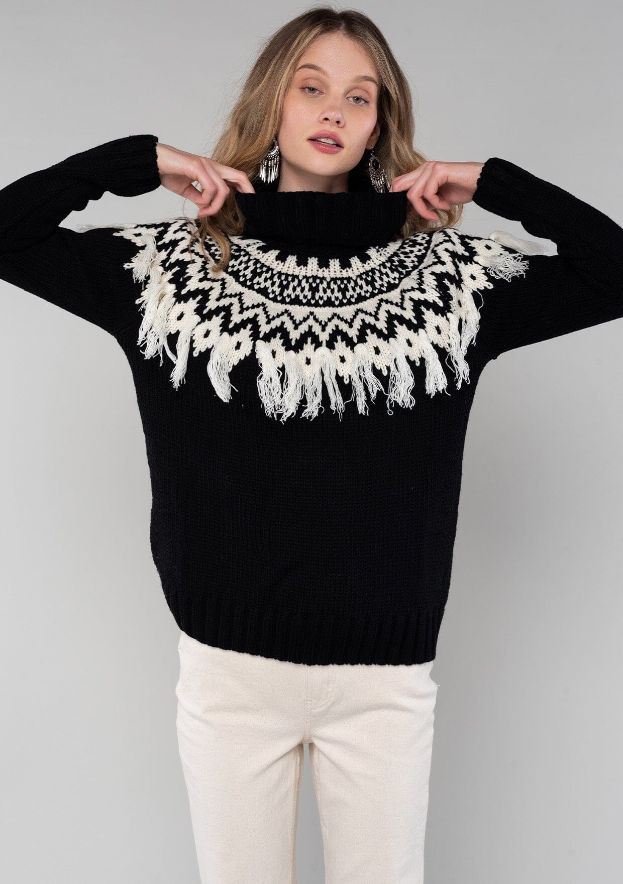 COTTON POINTELLE & RIB SPLIT BACK SWEATER