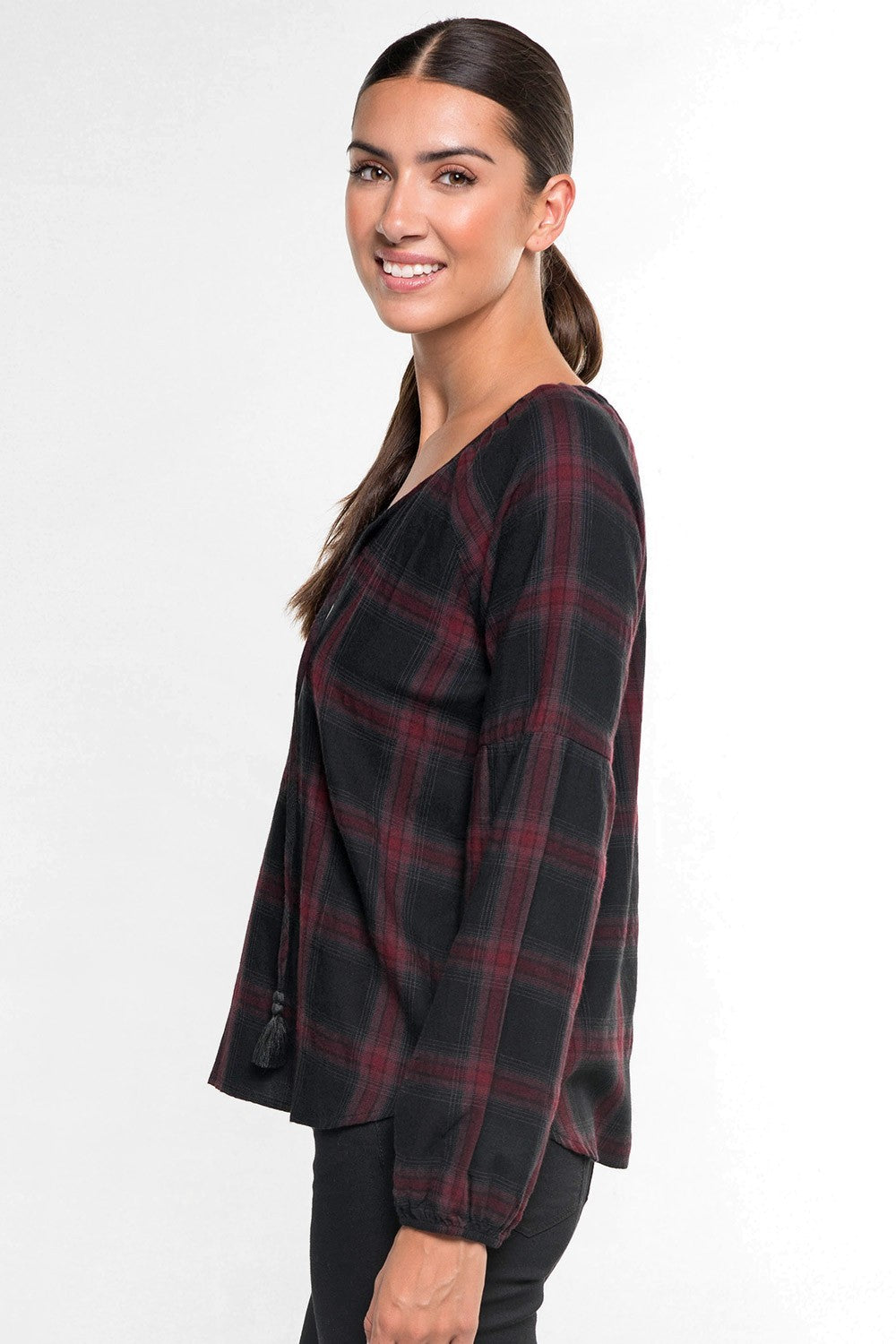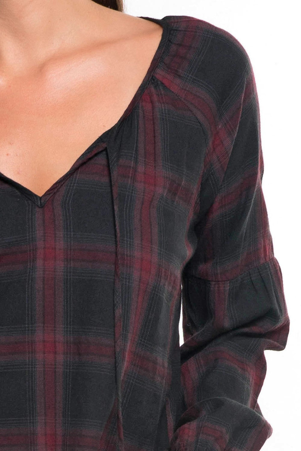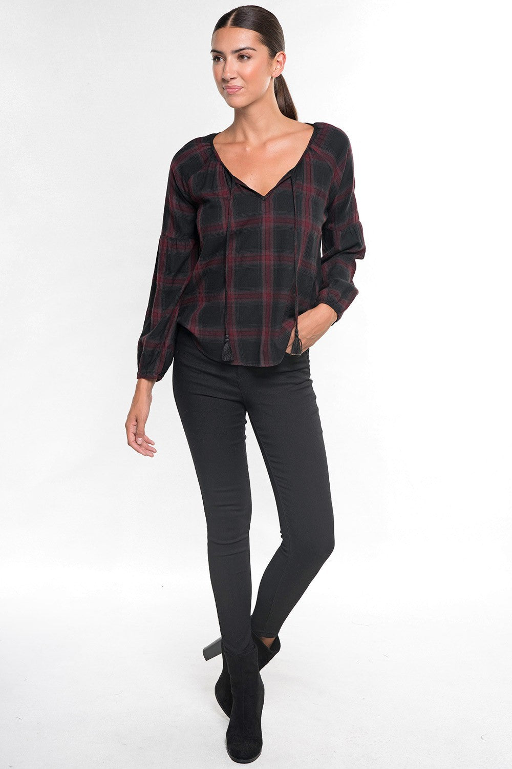 EMBROIDERED SLEEVE V-NECK BLOUSE