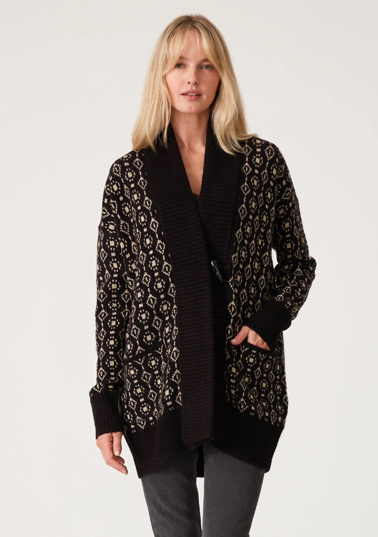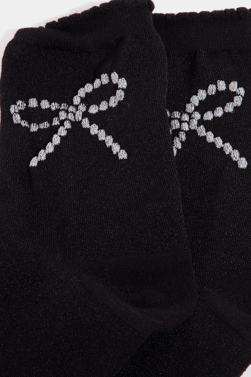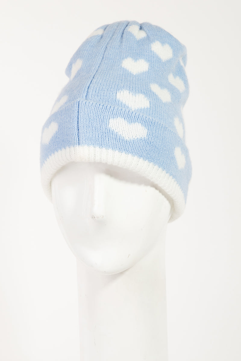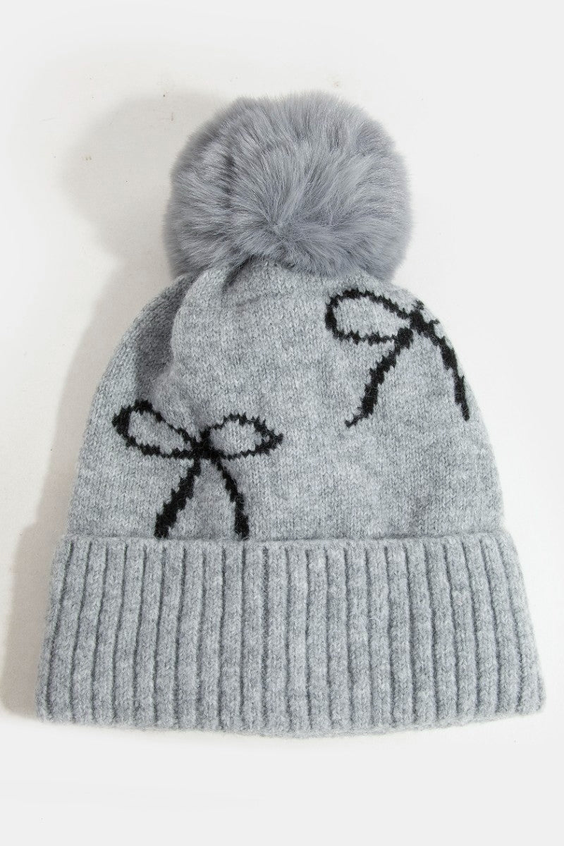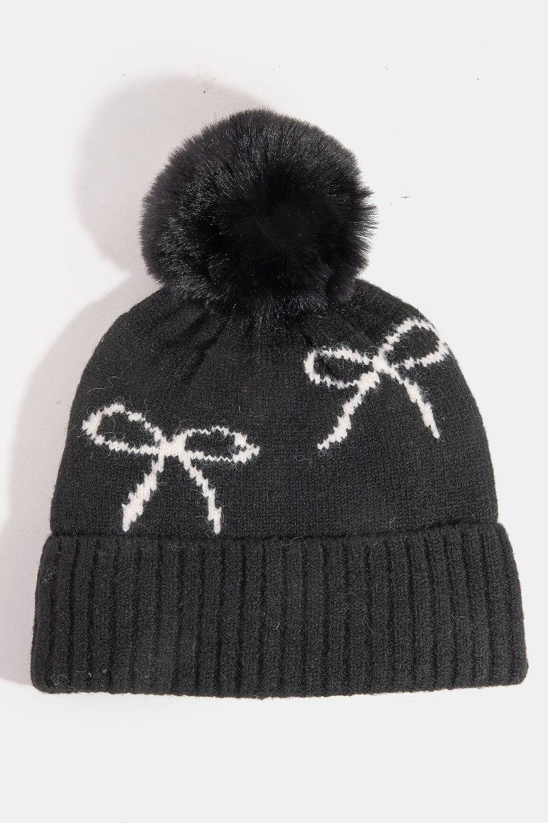 BOW PRINT TOQUE WITH FAUX FUR POMPOM