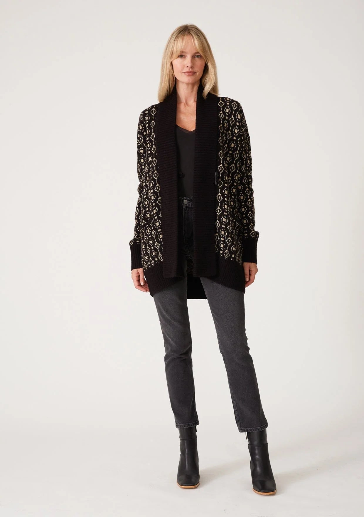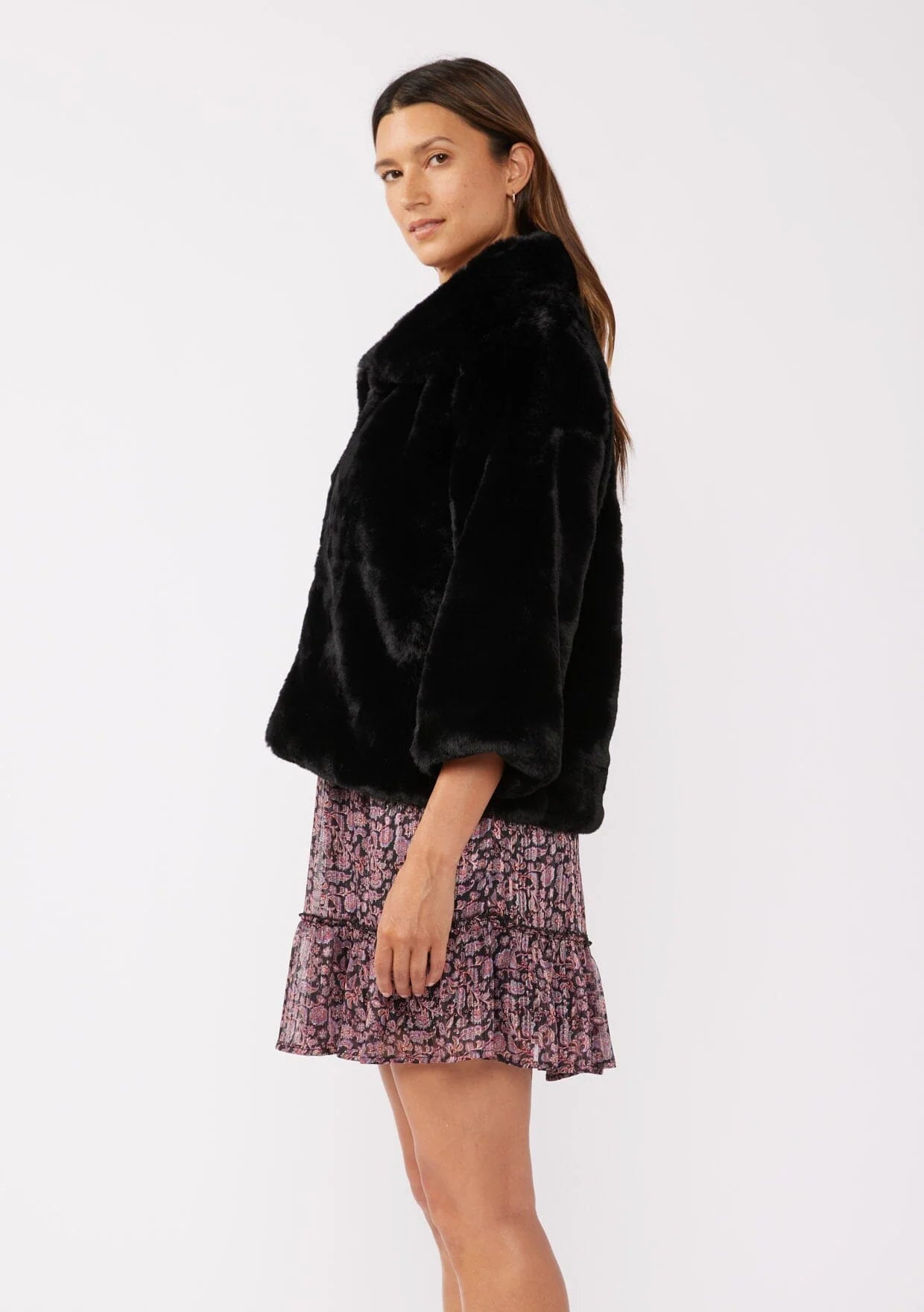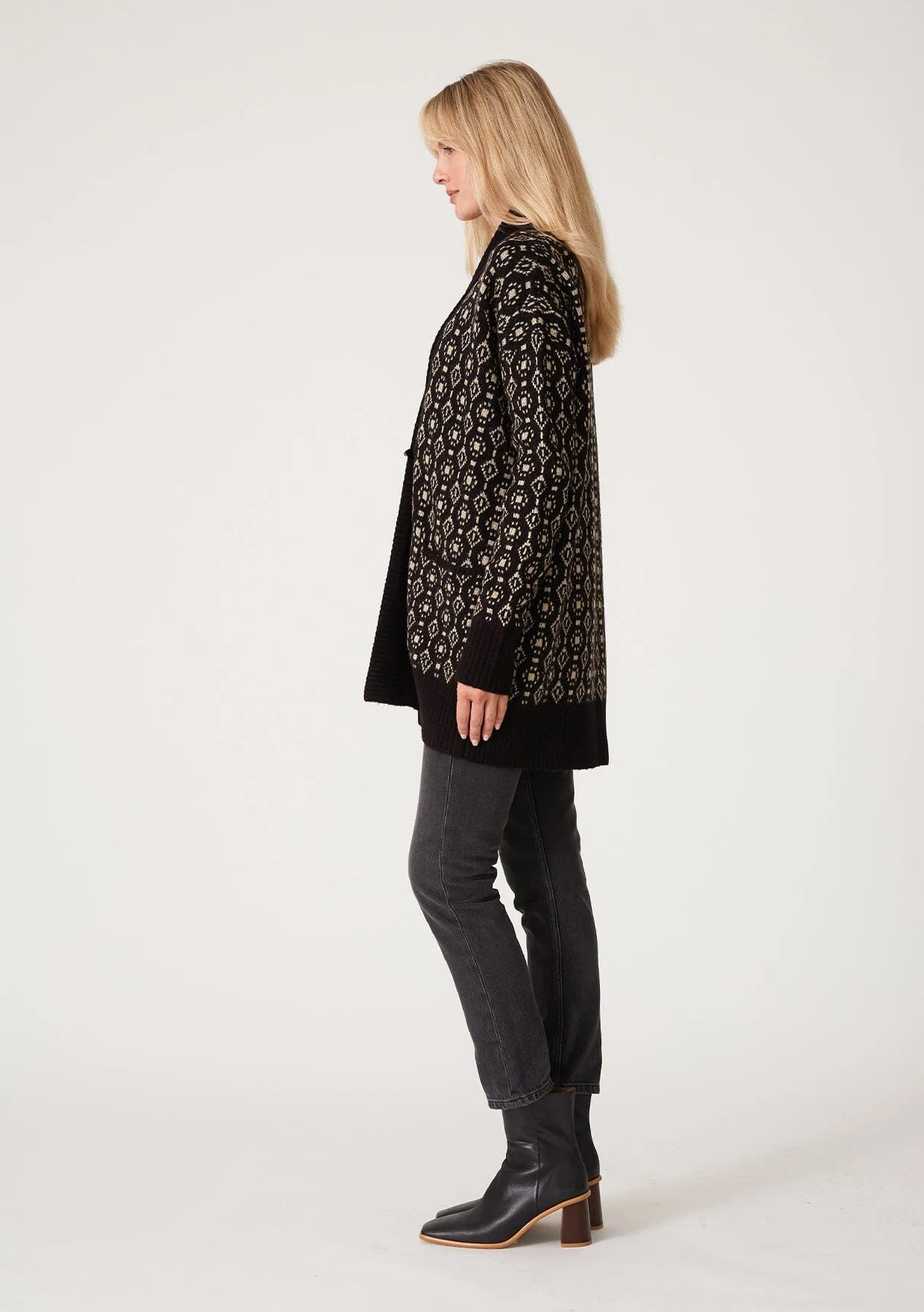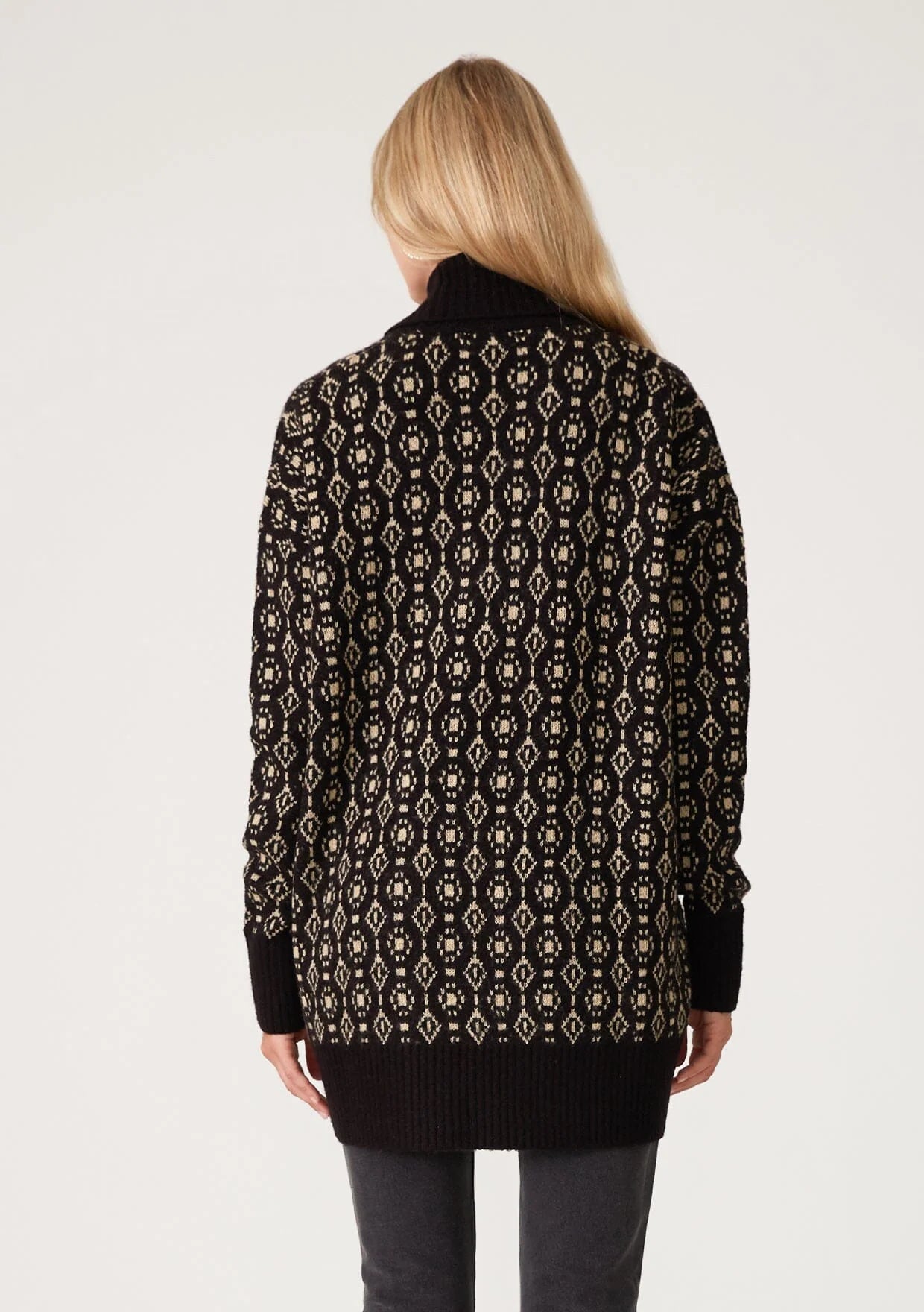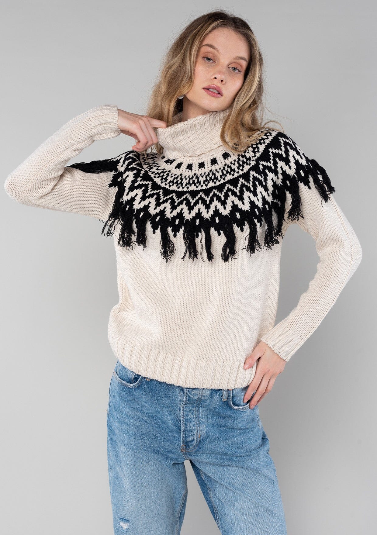 BOW PRINT TOQUE WITH FAUX FUR POMPOM