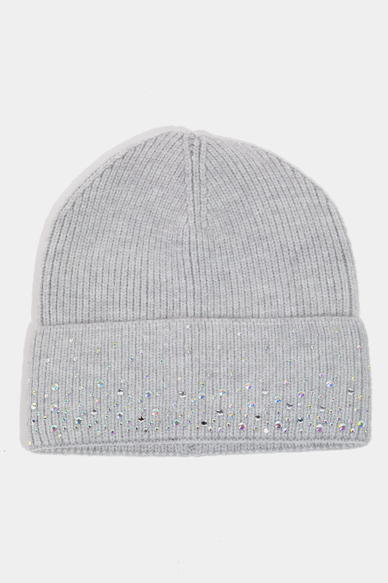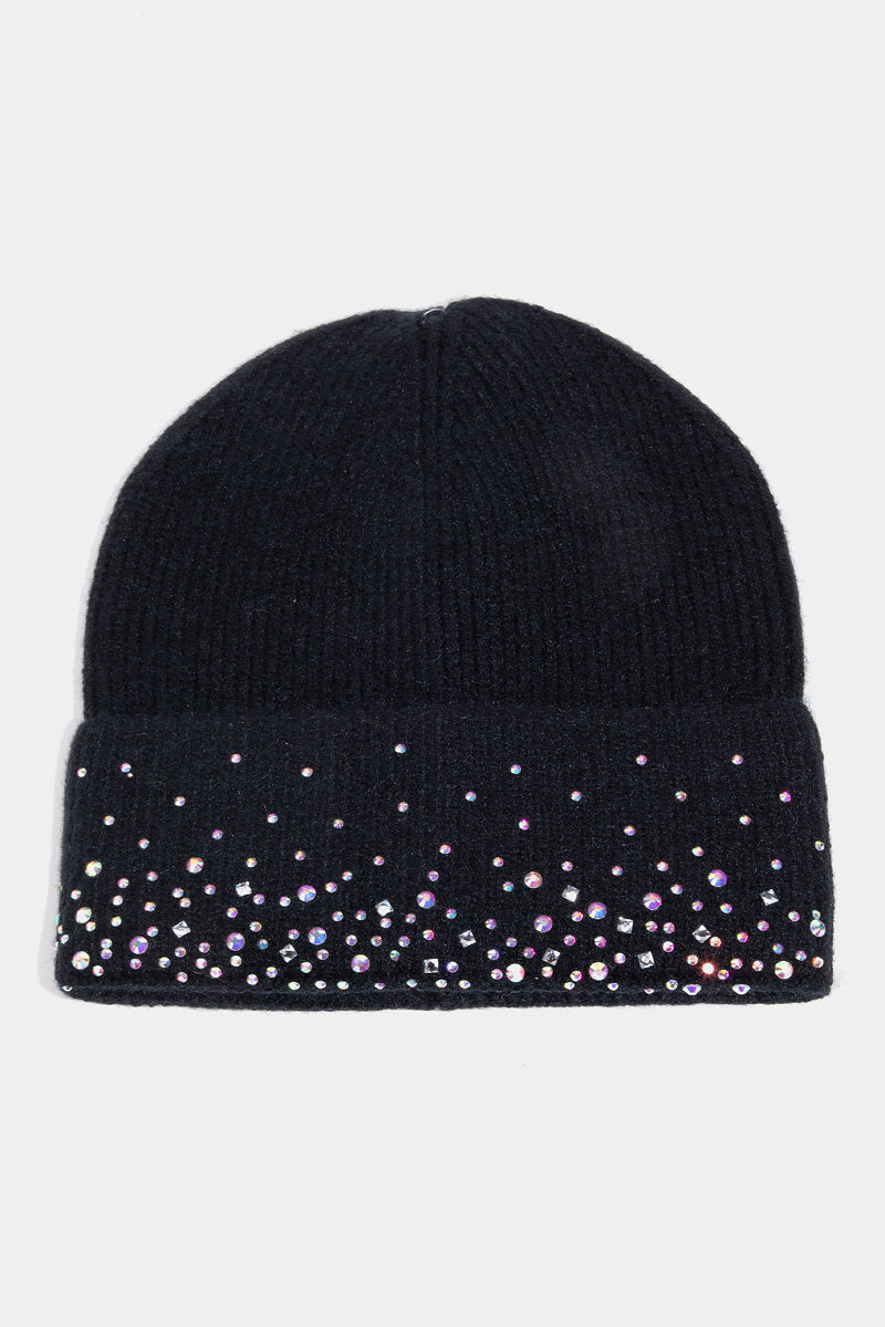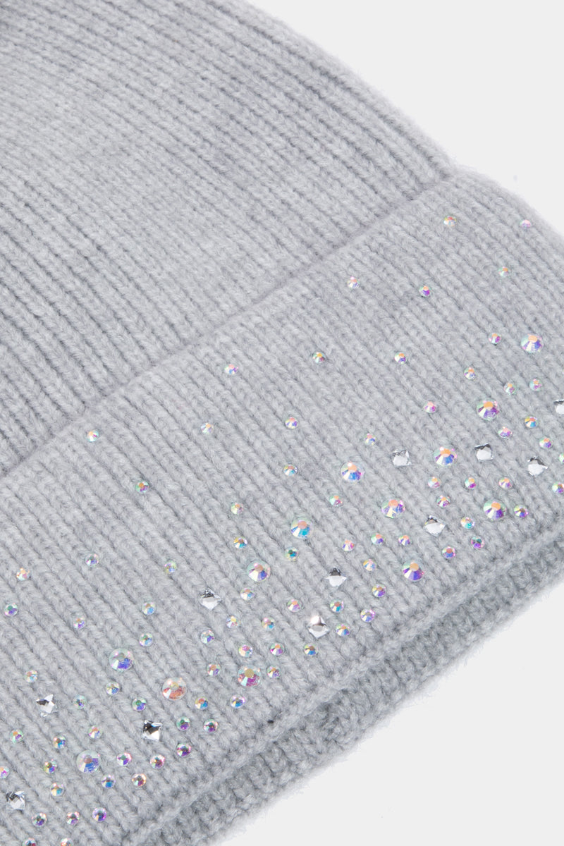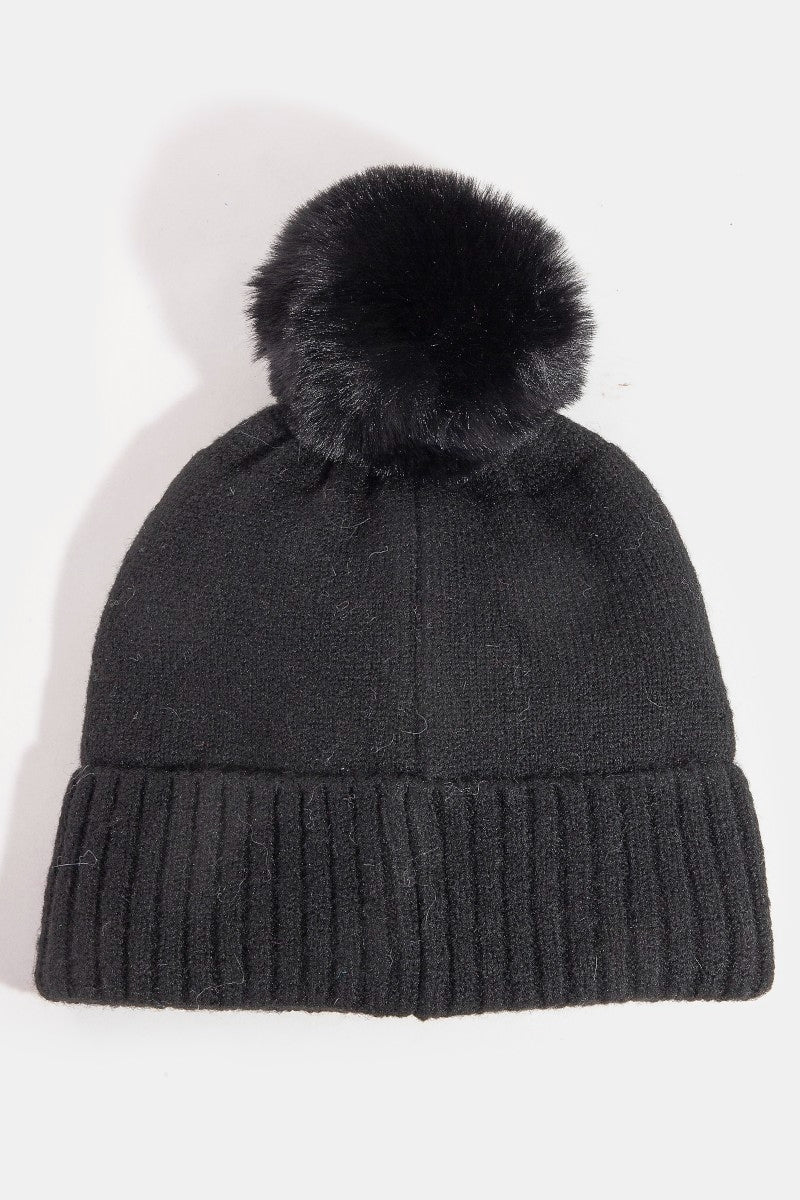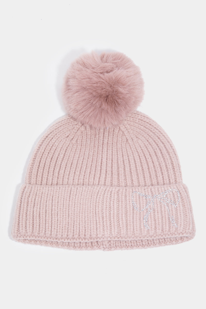 RHINESTONE BOW TOQUE WITH FAUX FUR POMPOM