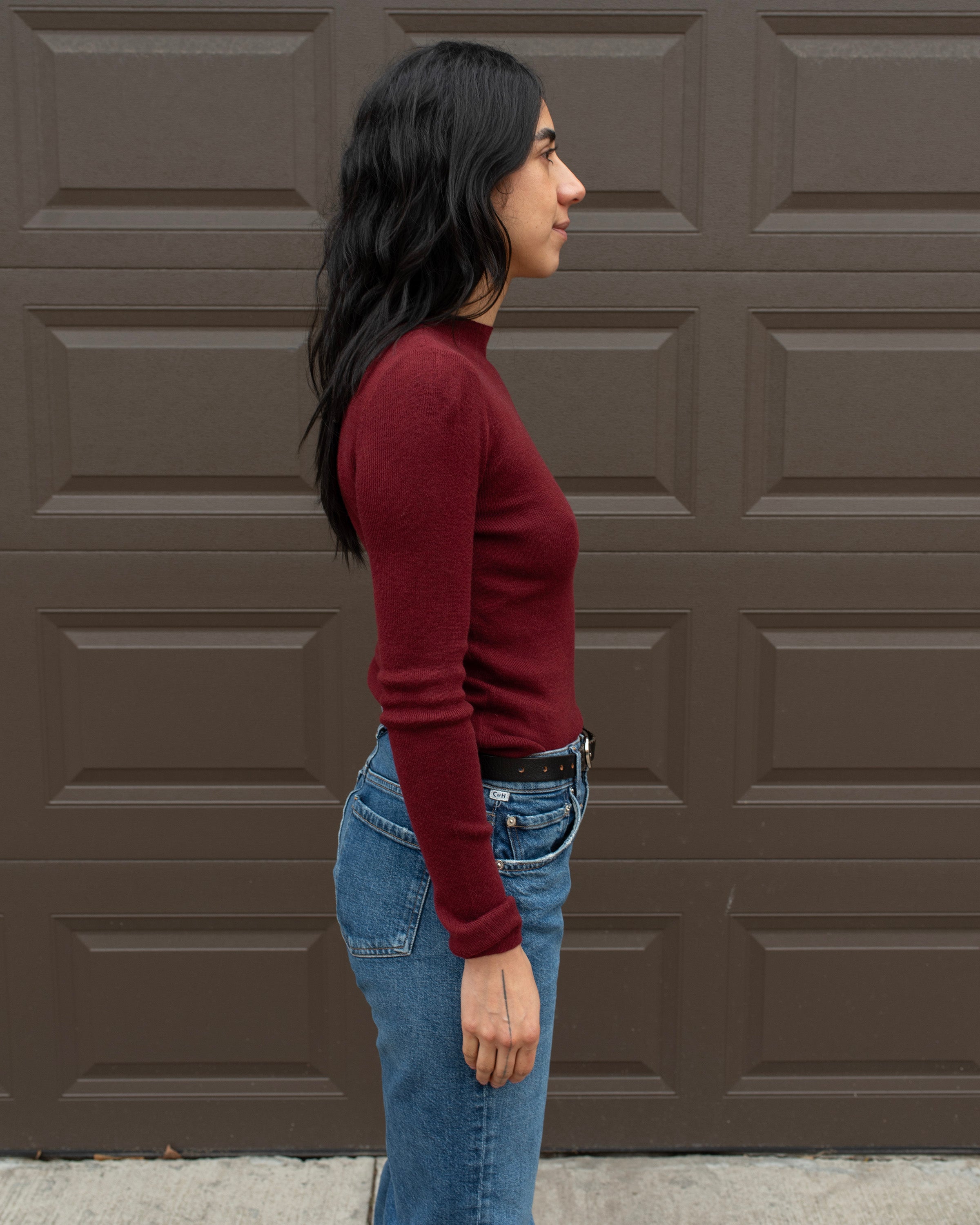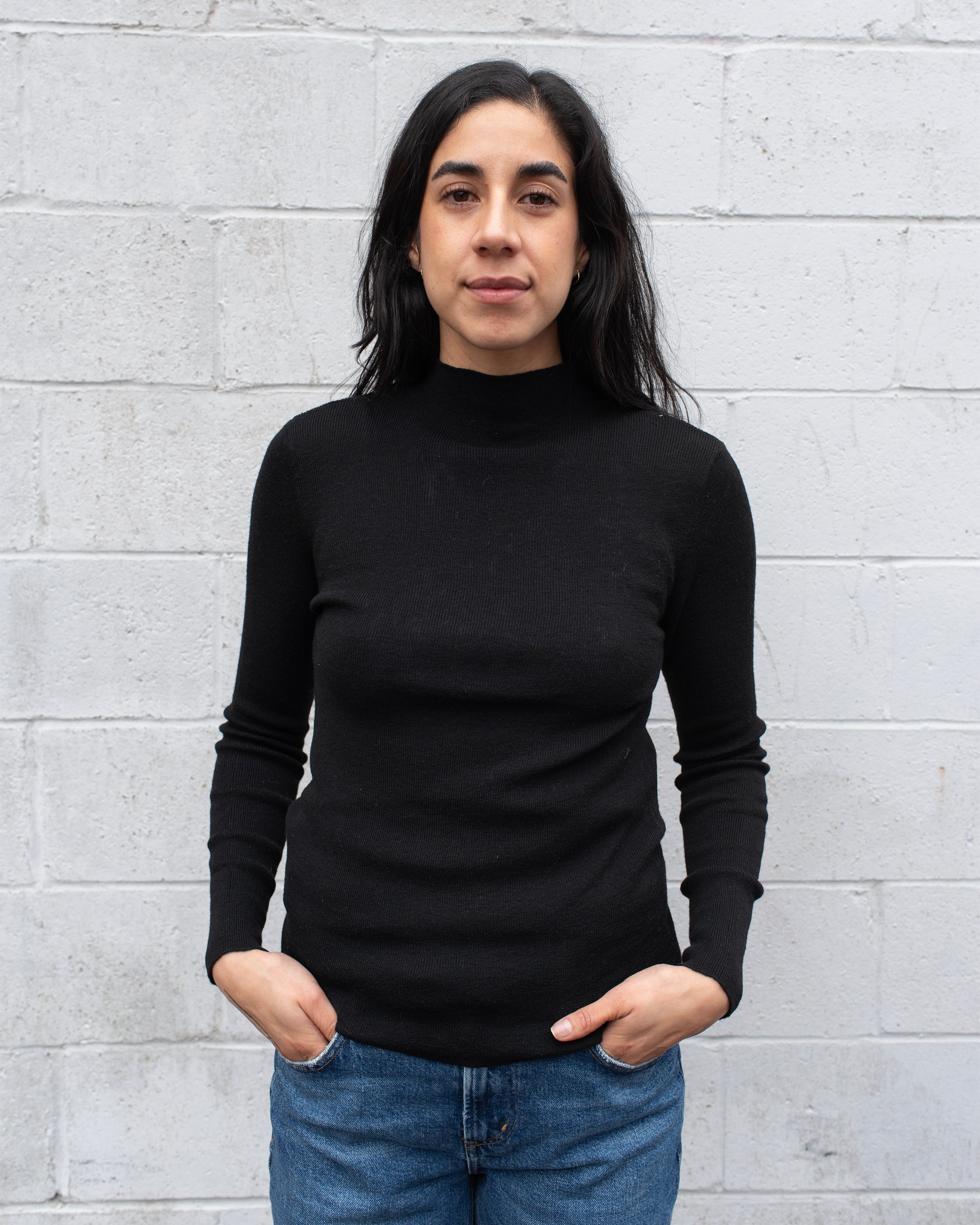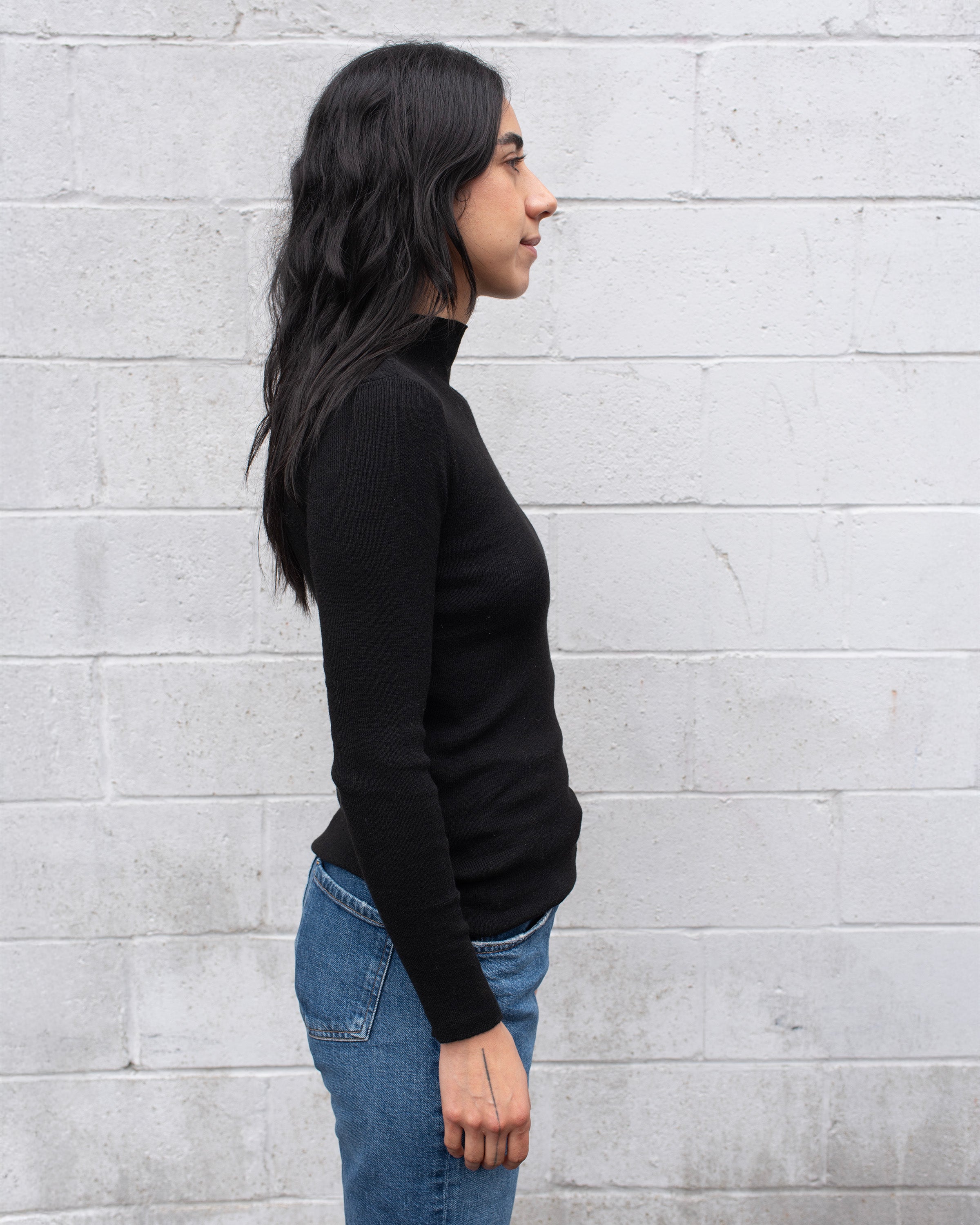 MOCK NECK FINE KNIT TOP