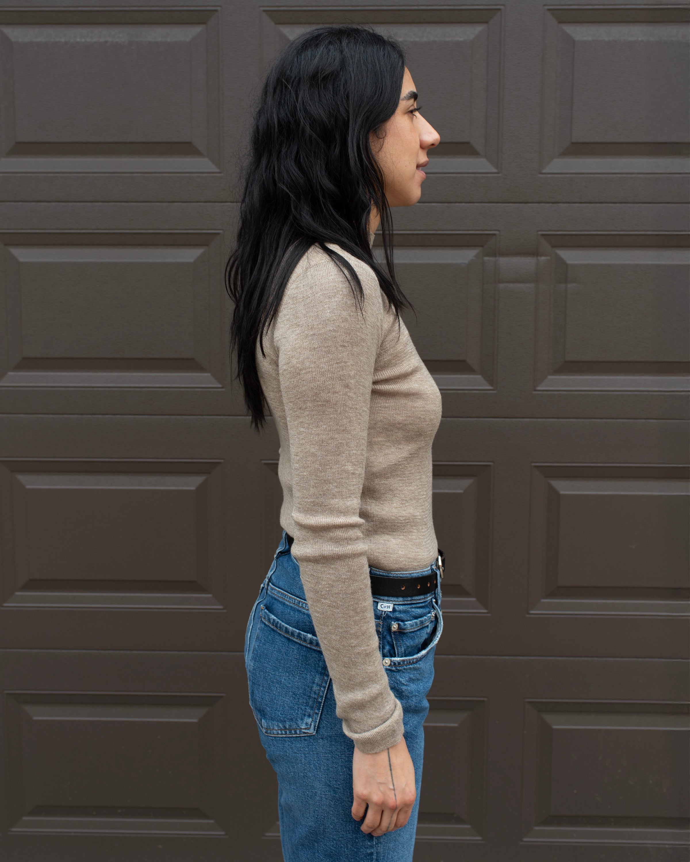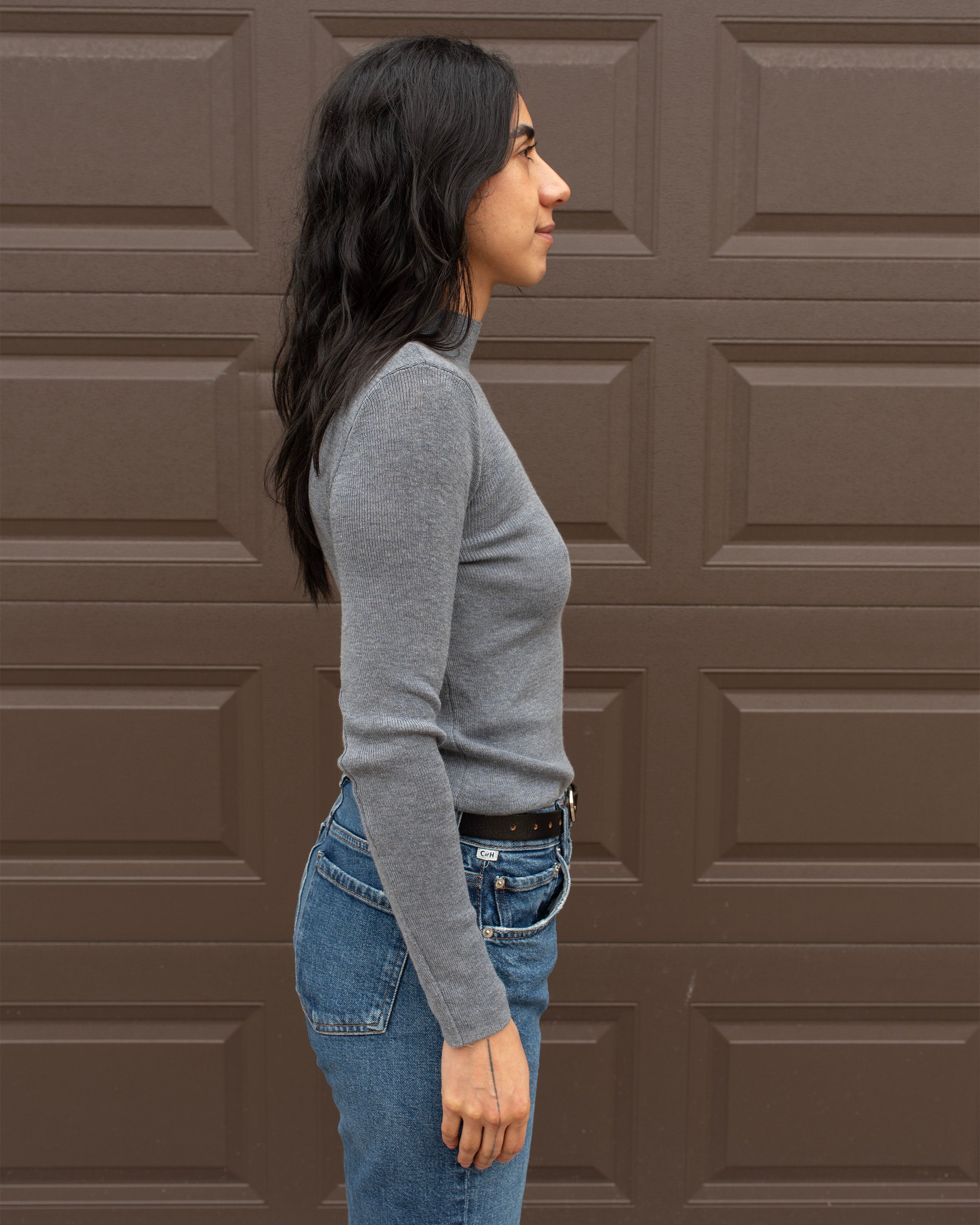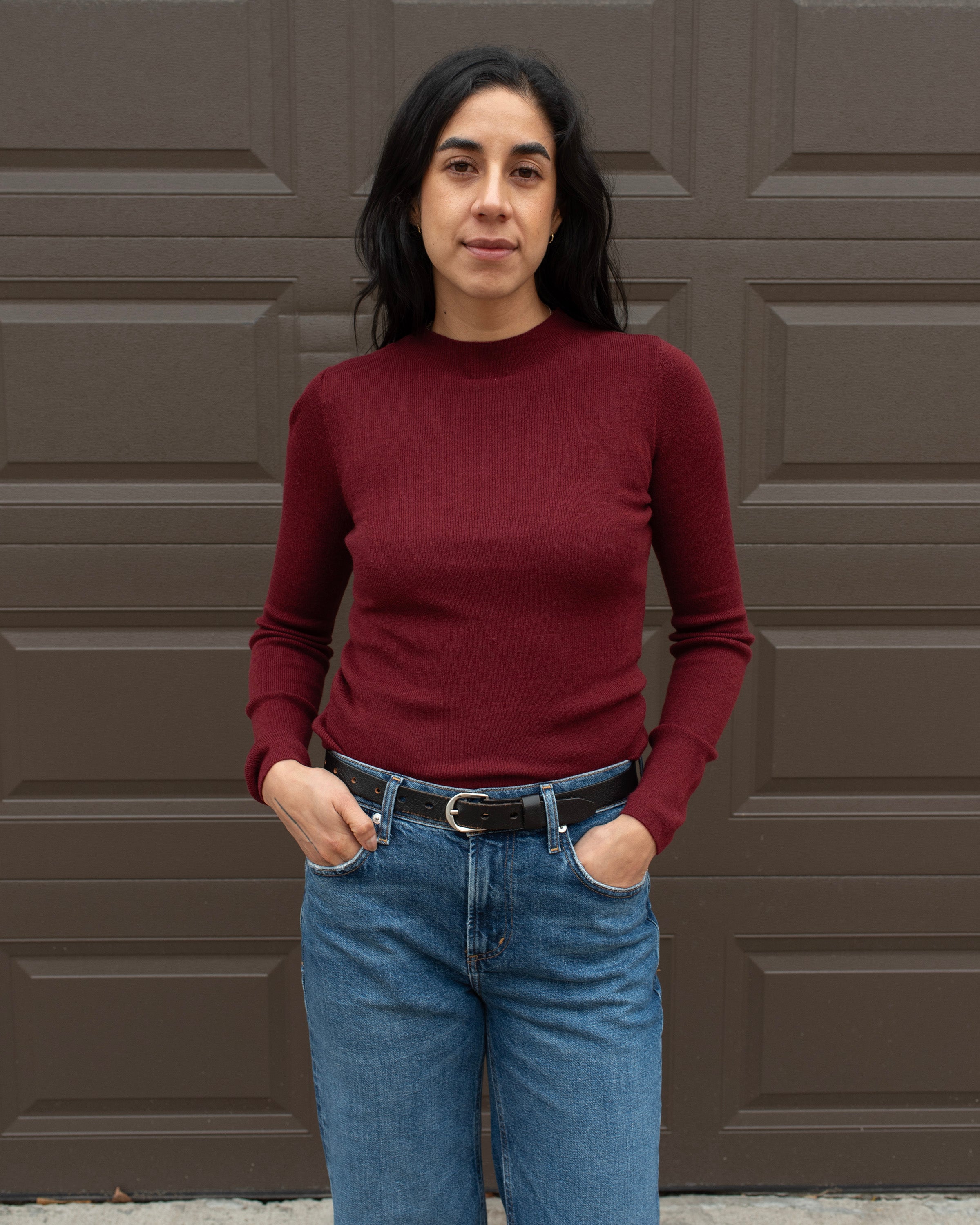 MOCK NECK FINE KNIT TOP