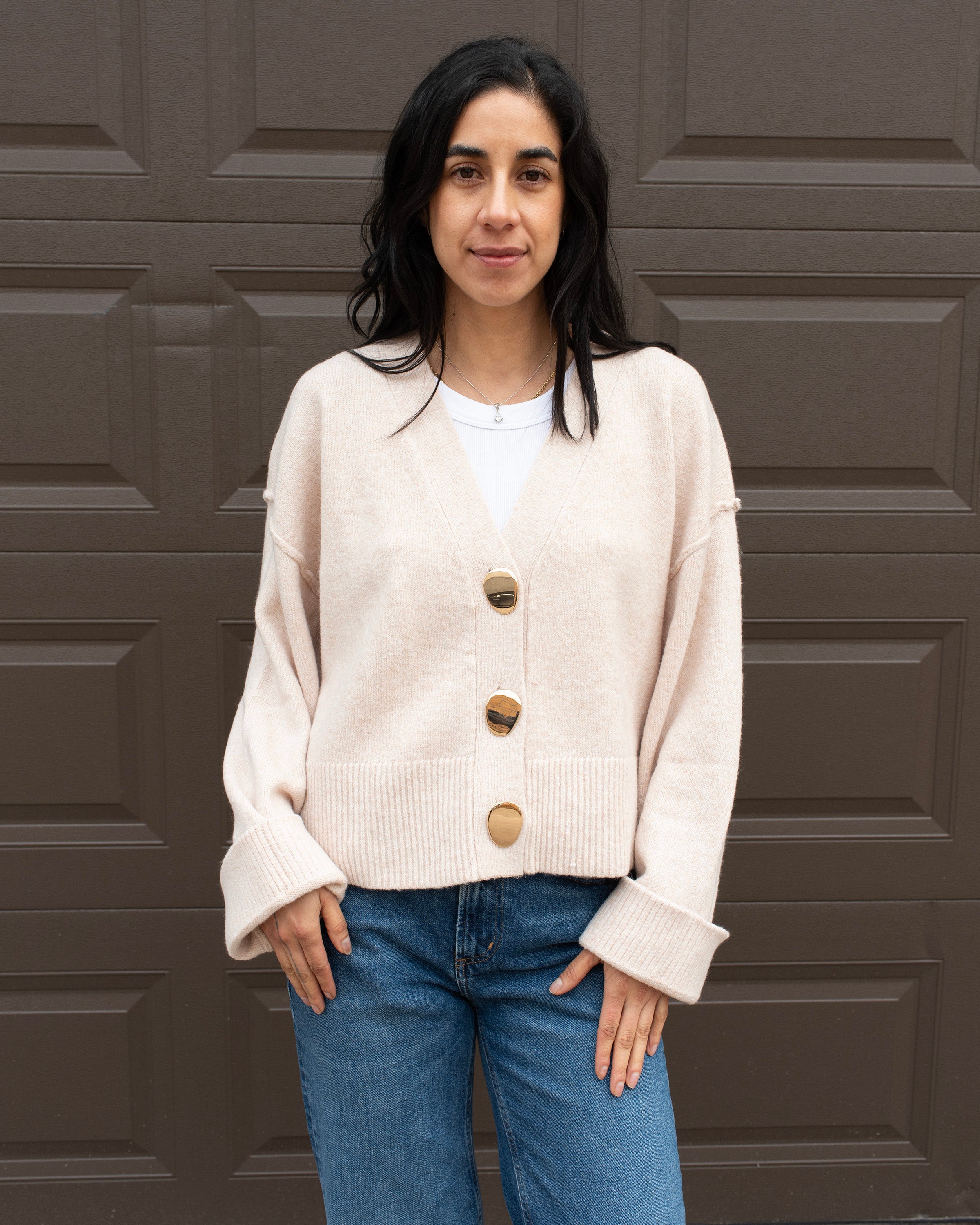 V-NECK CARDIGAN WITH GOLD BUTTONS
