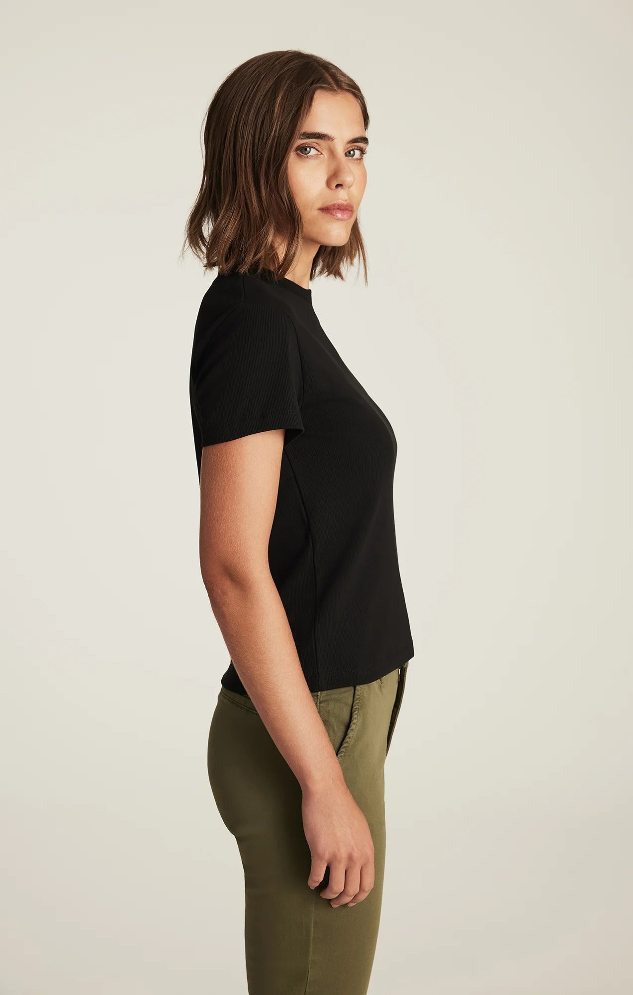 SHORT SLEEVE ICONIC PIMA STRETCH FITTED V-NECK TEE