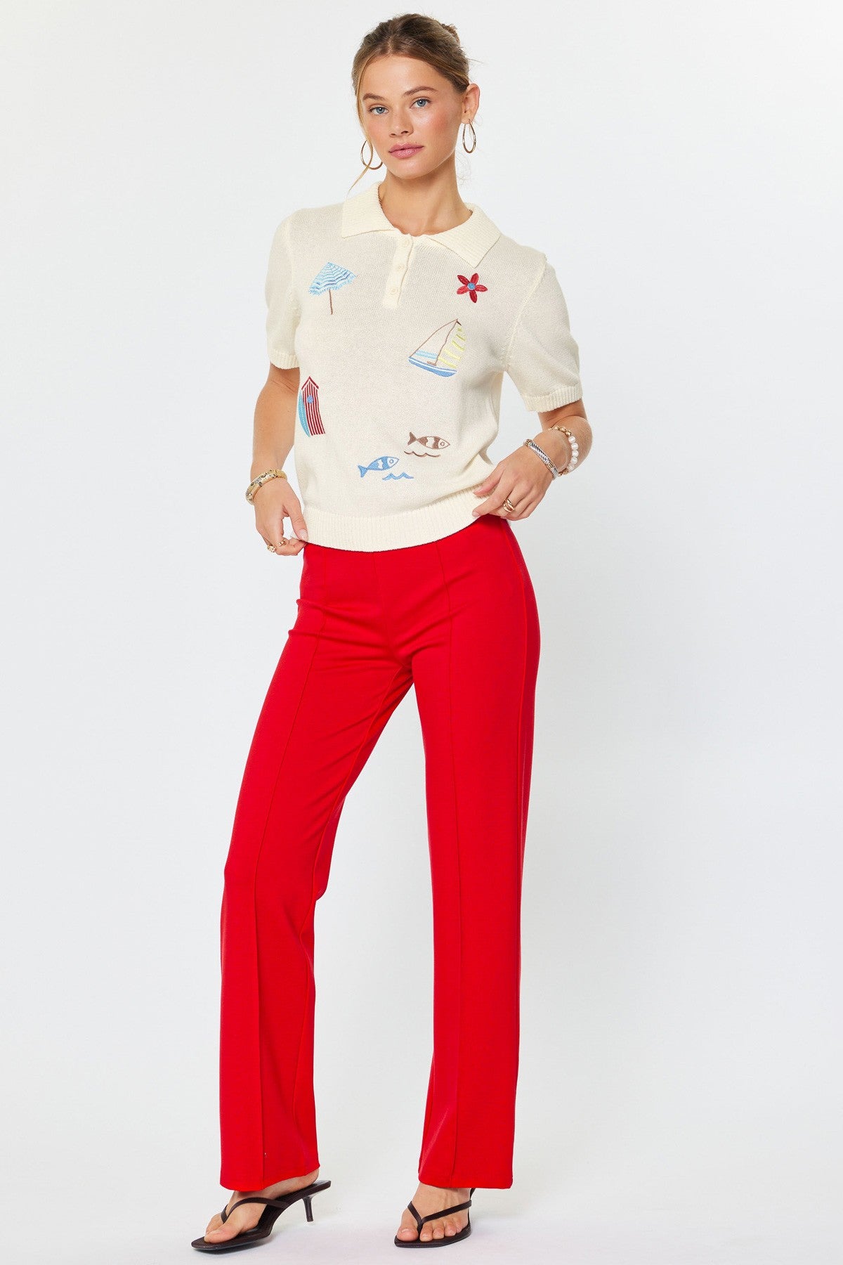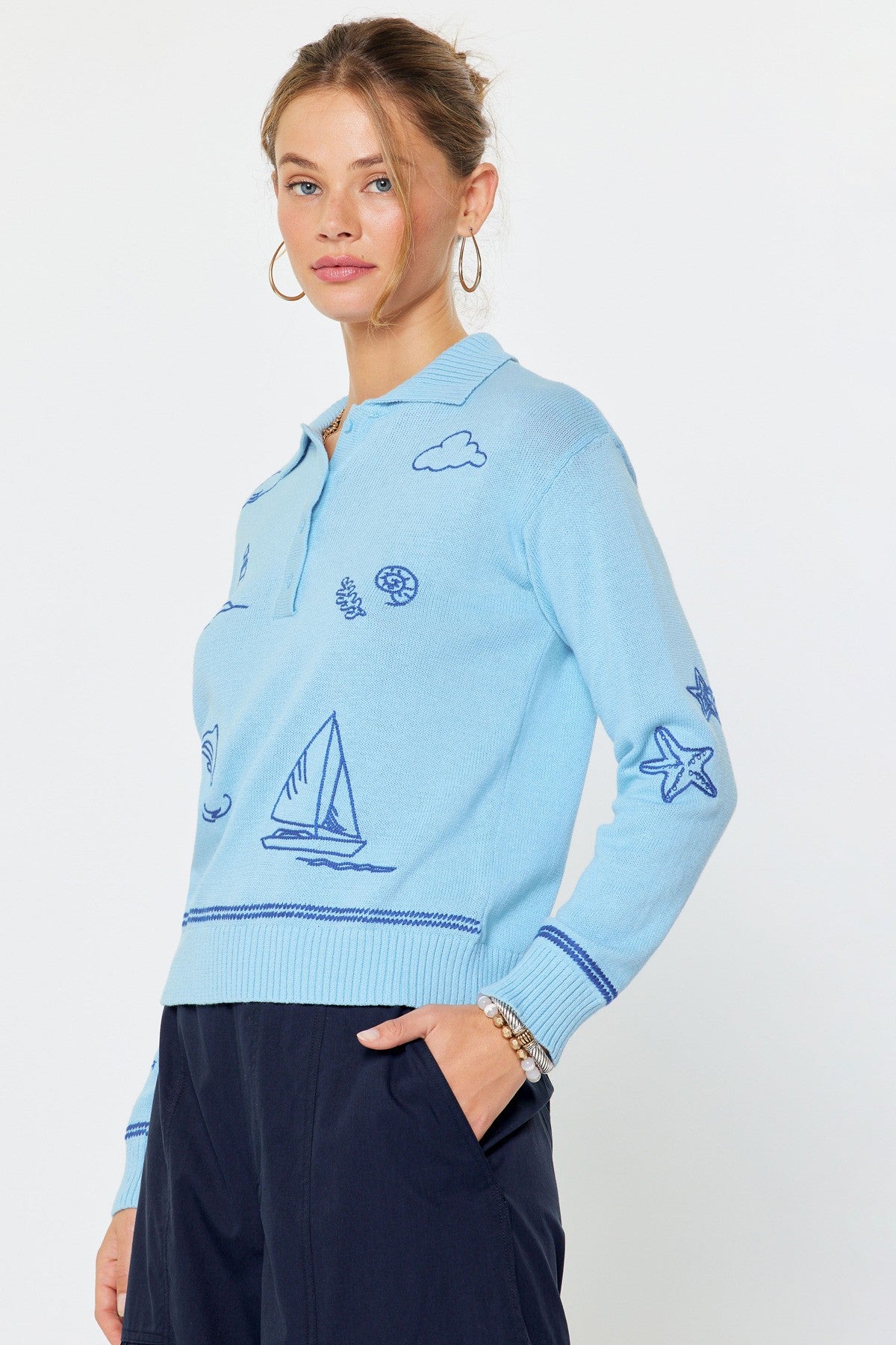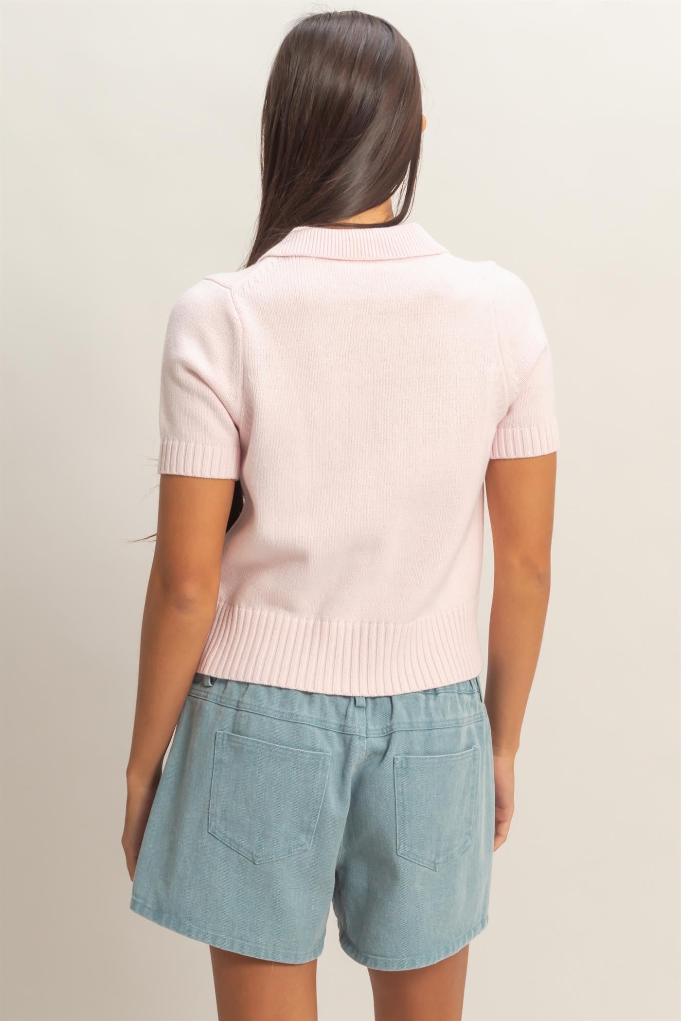 NAUTICAL MOTIF SHORT SLEEVE POLO SWEATER