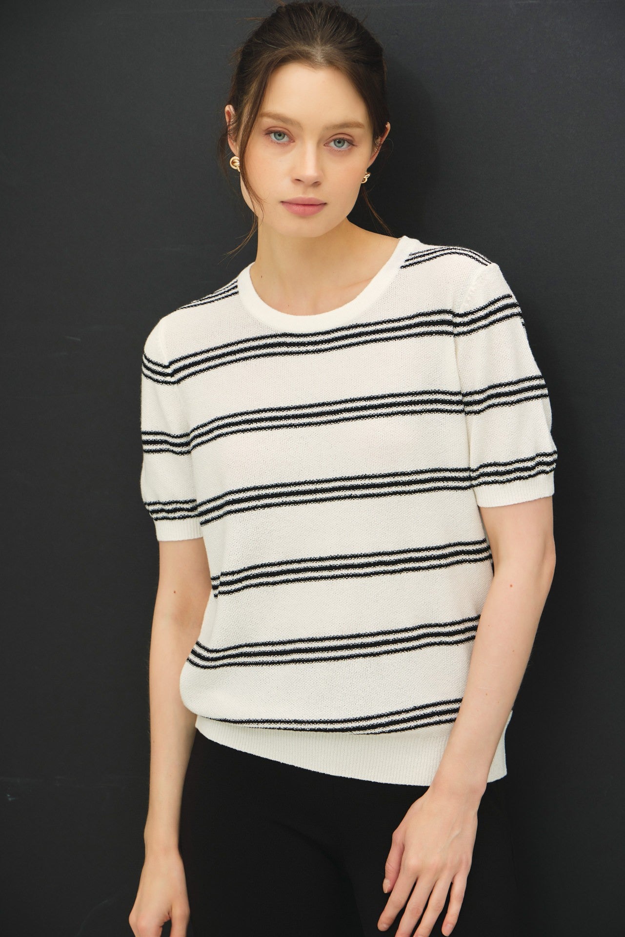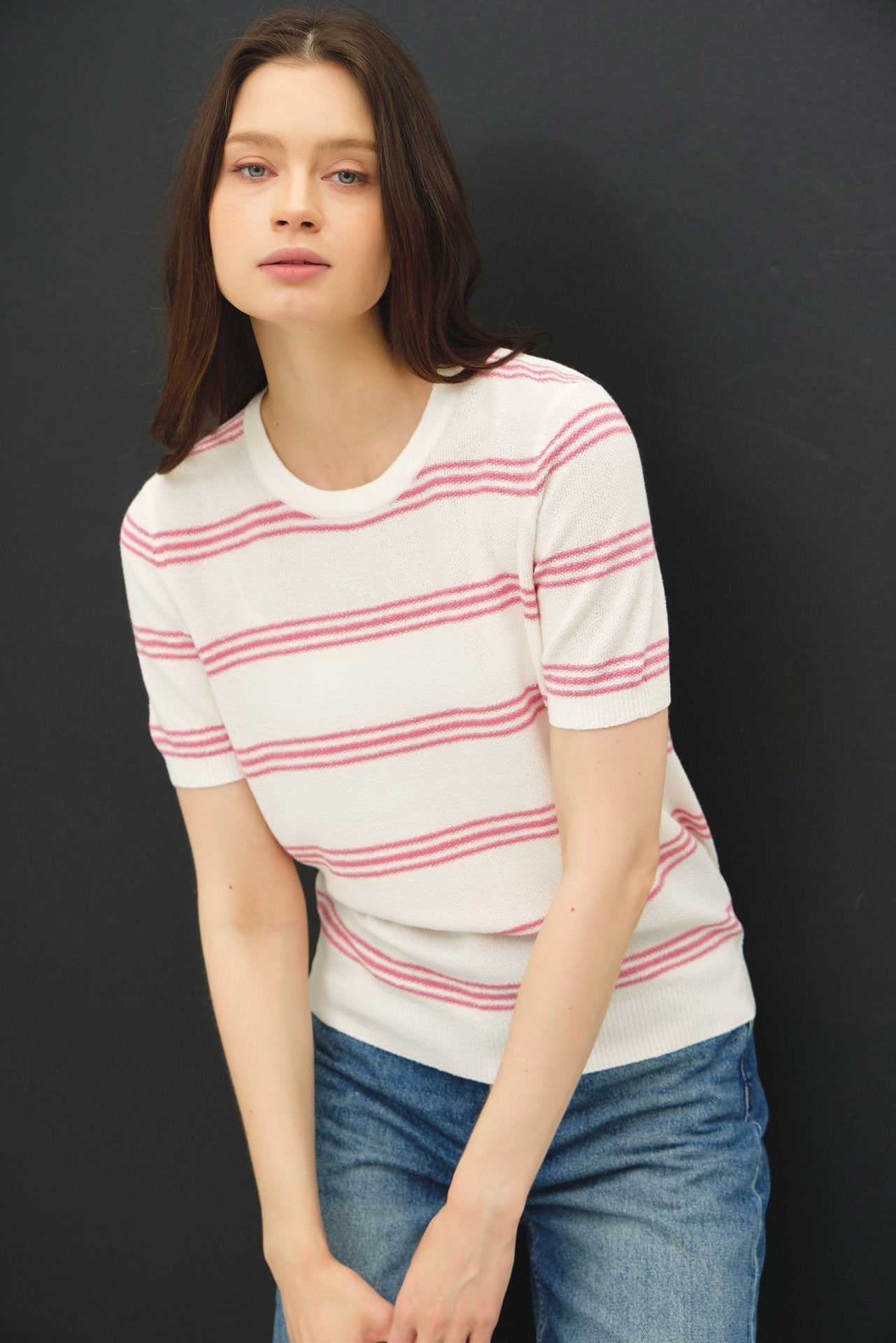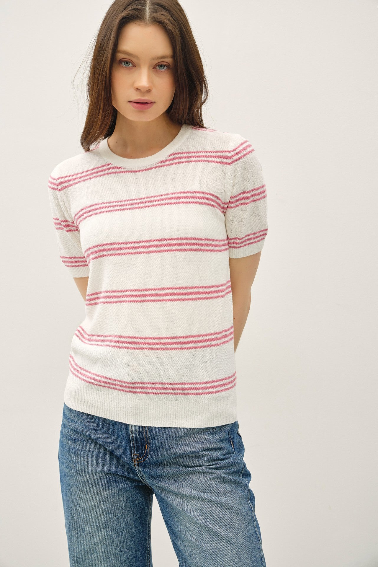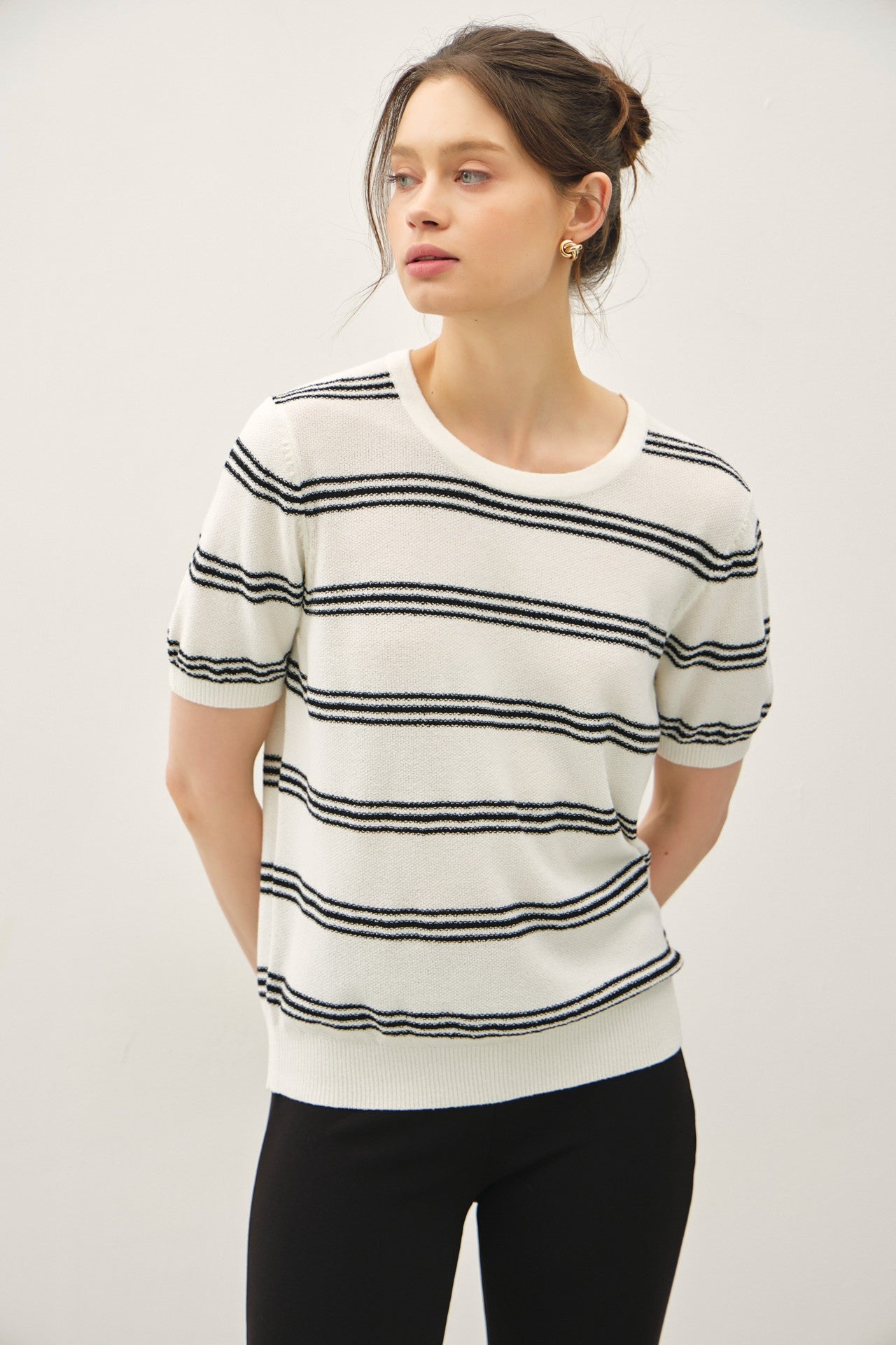 TRIPLE STRIPE SHORT SLEEVE SWEATER