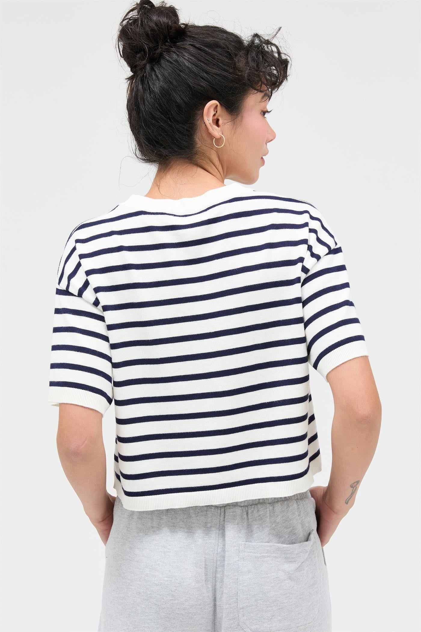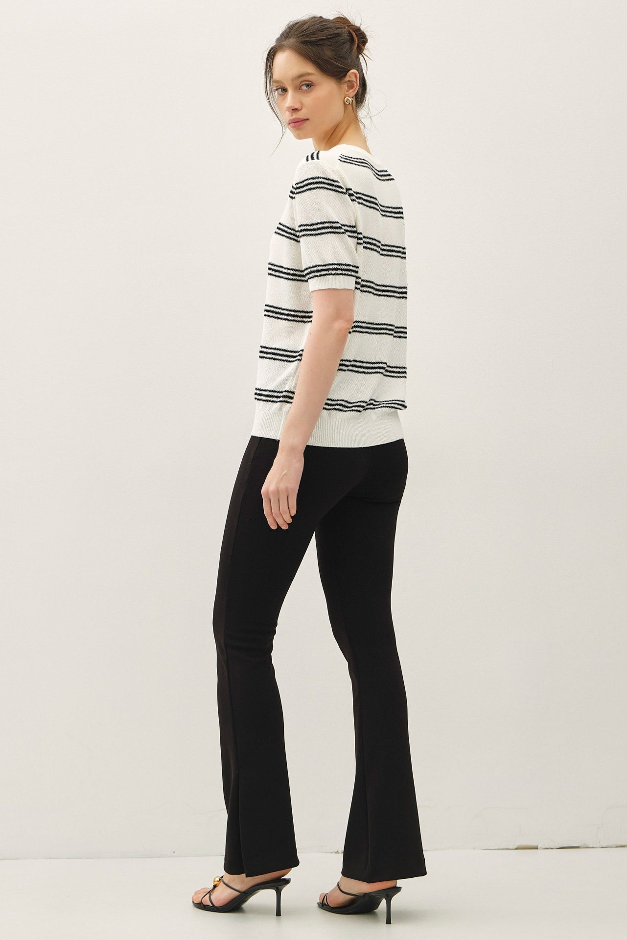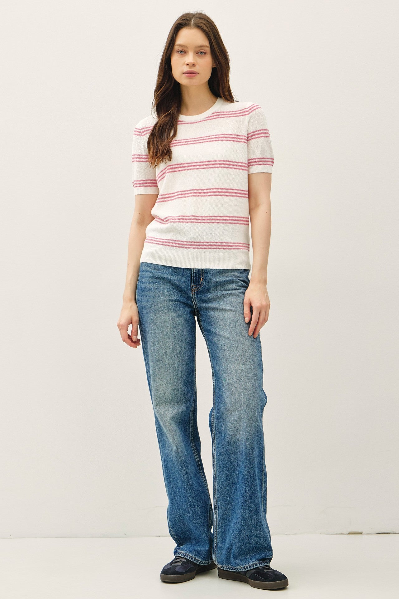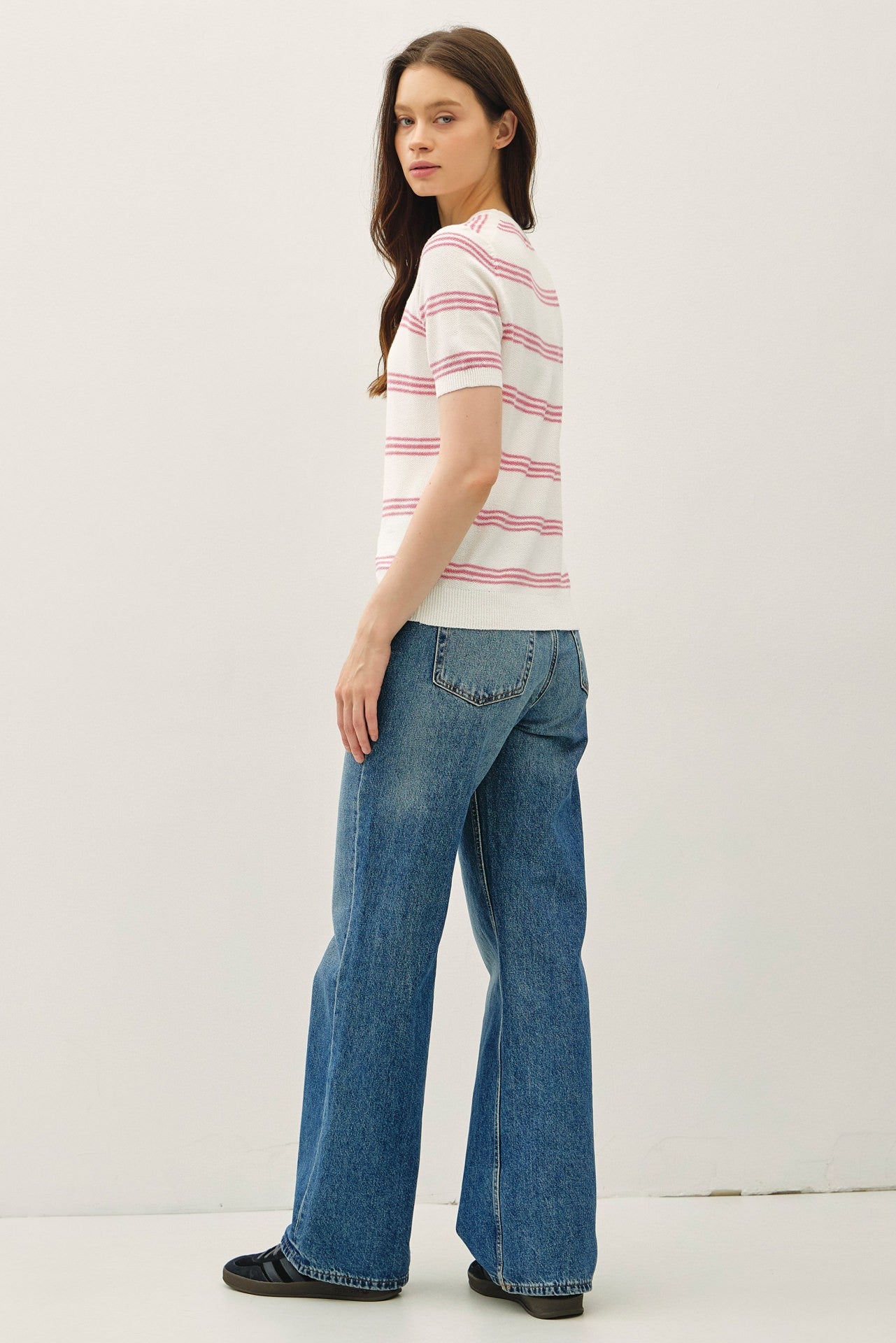 TRIPLE STRIPE SHORT SLEEVE SWEATER