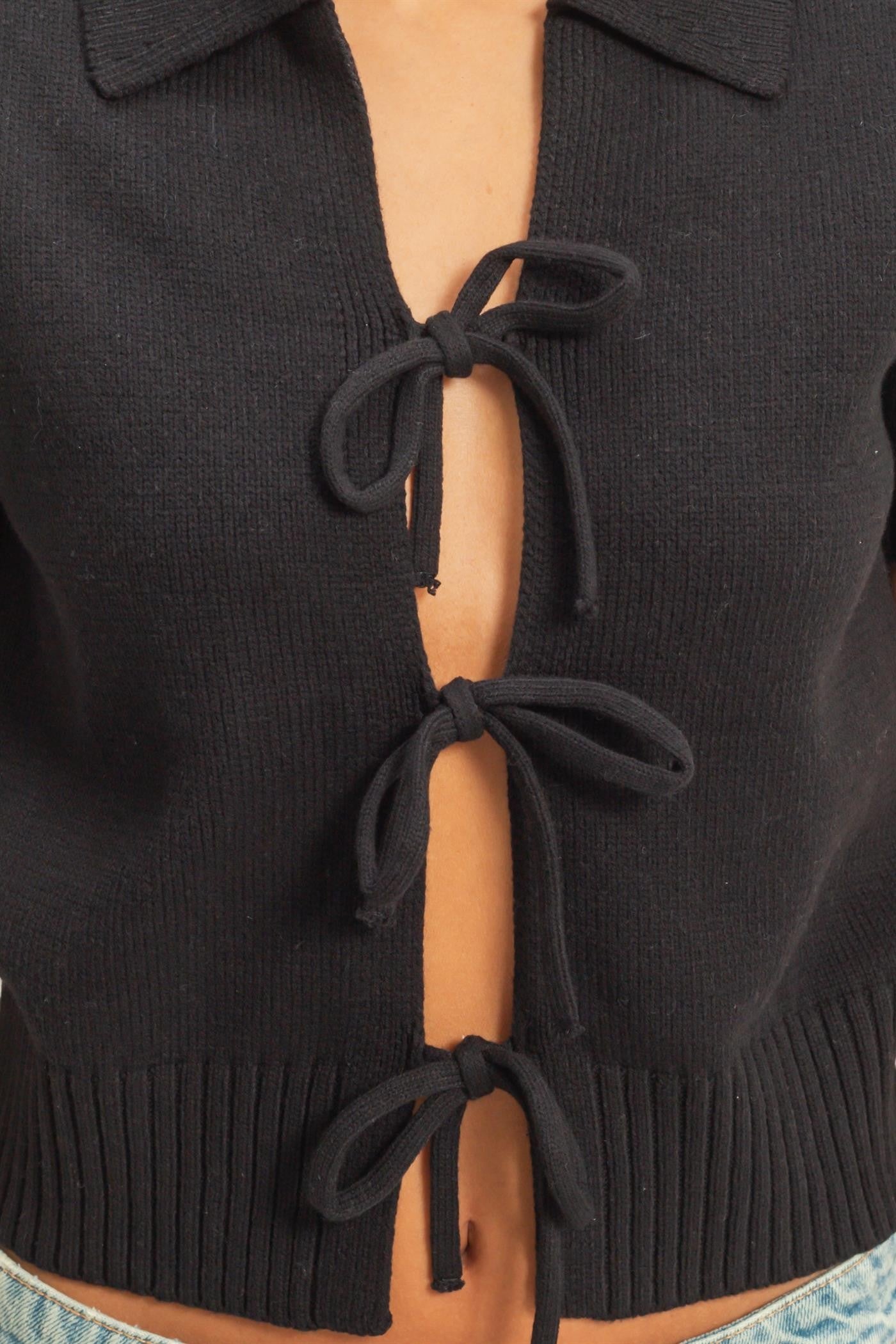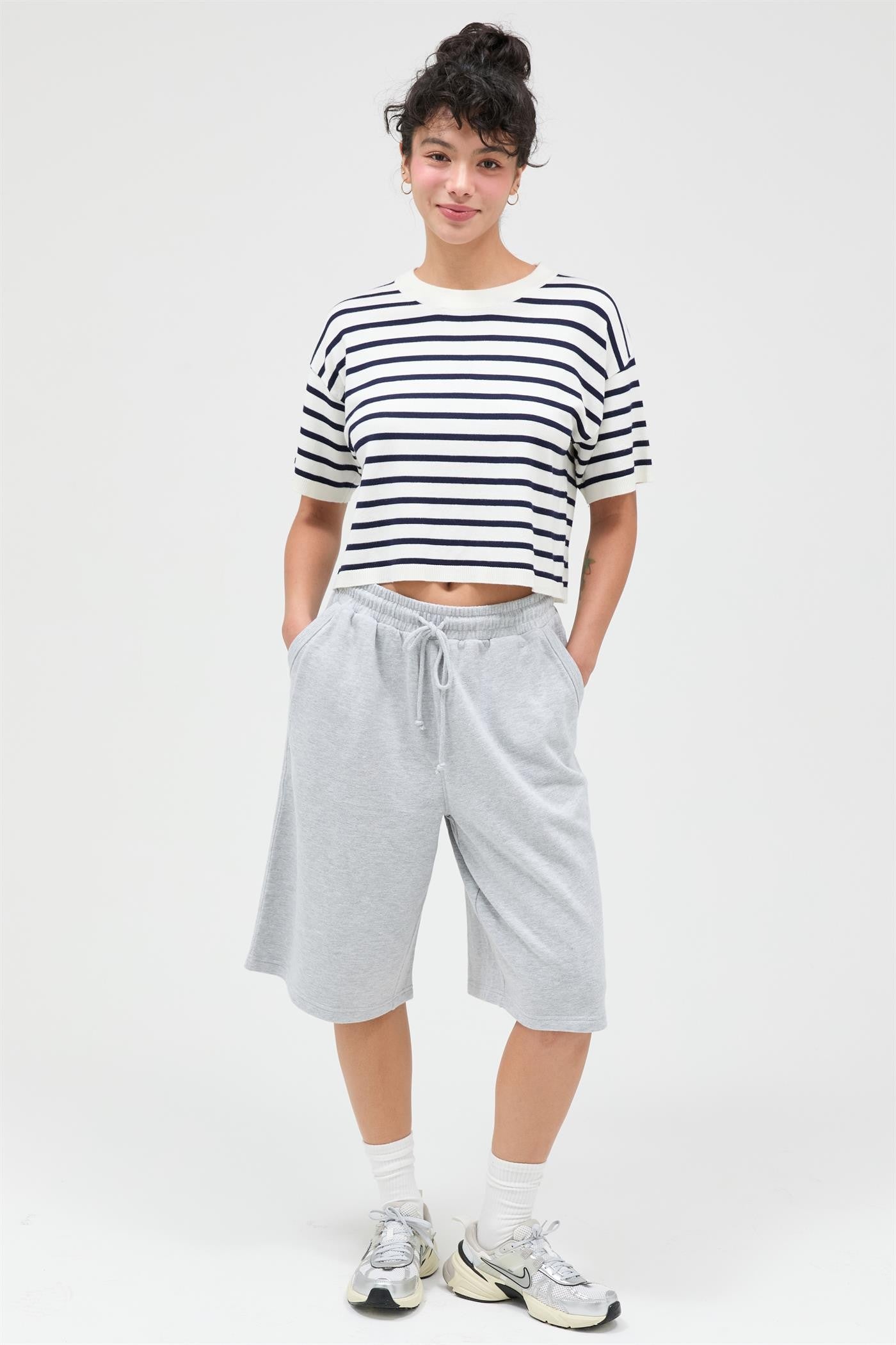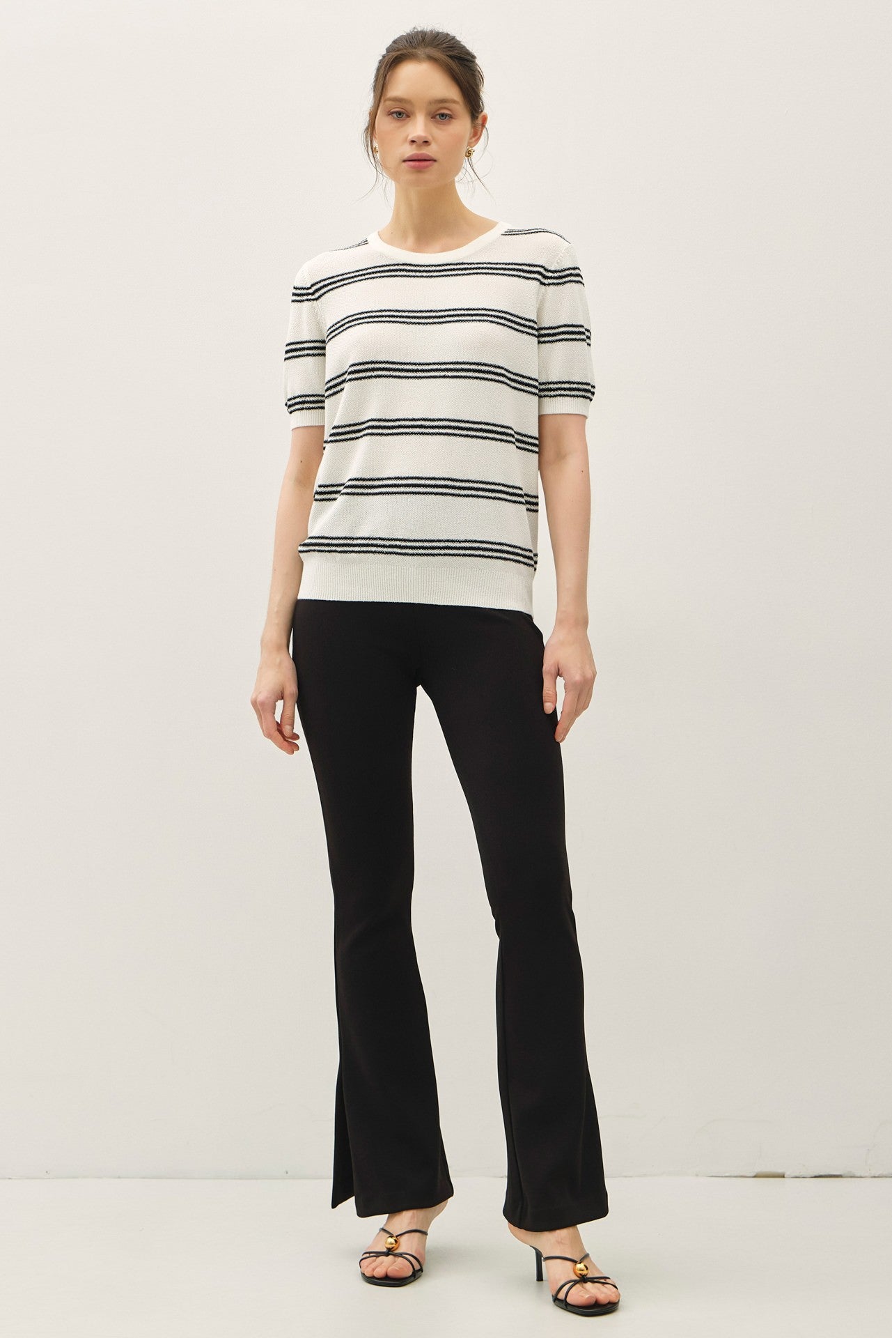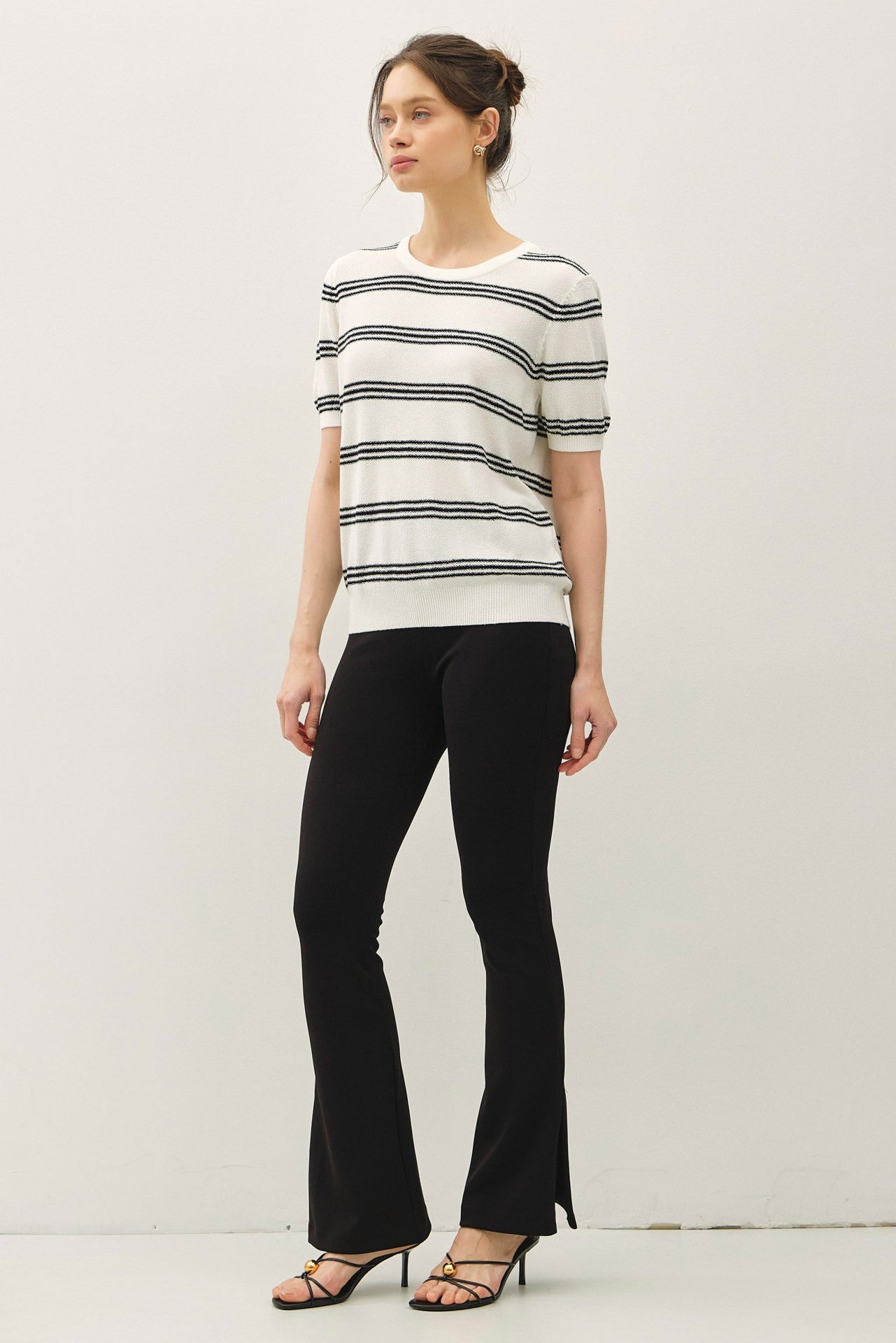 TRIPLE STRIPE SHORT SLEEVE SWEATER