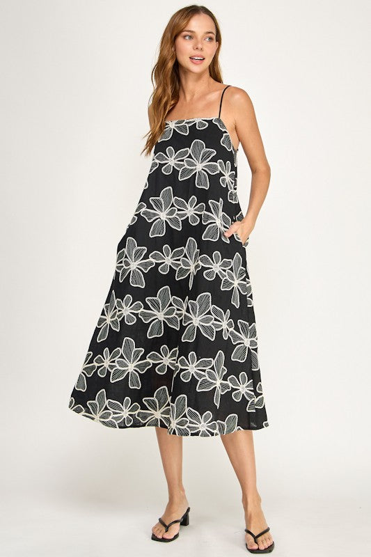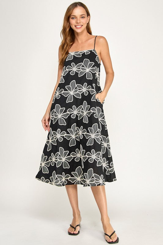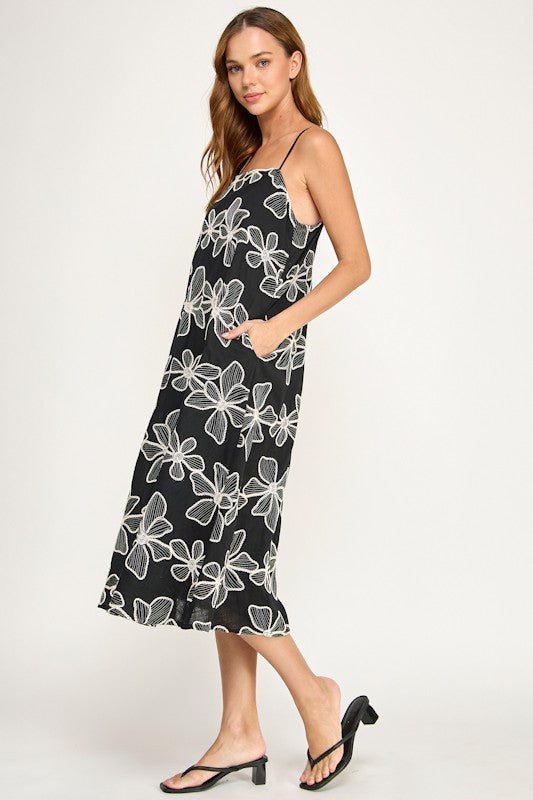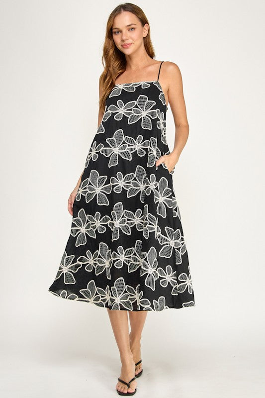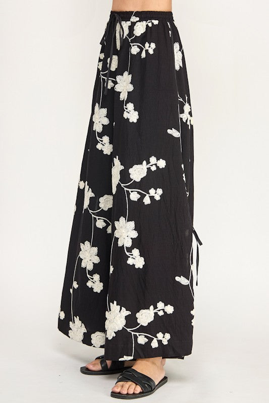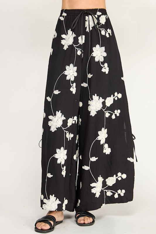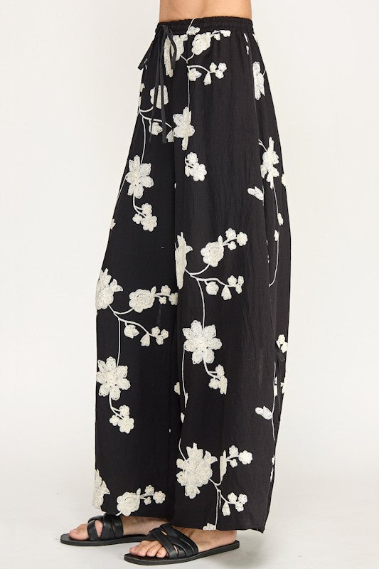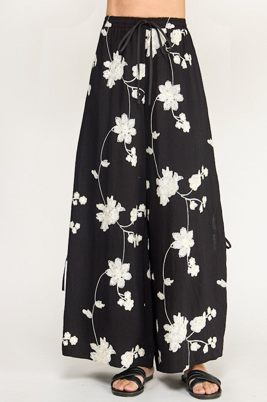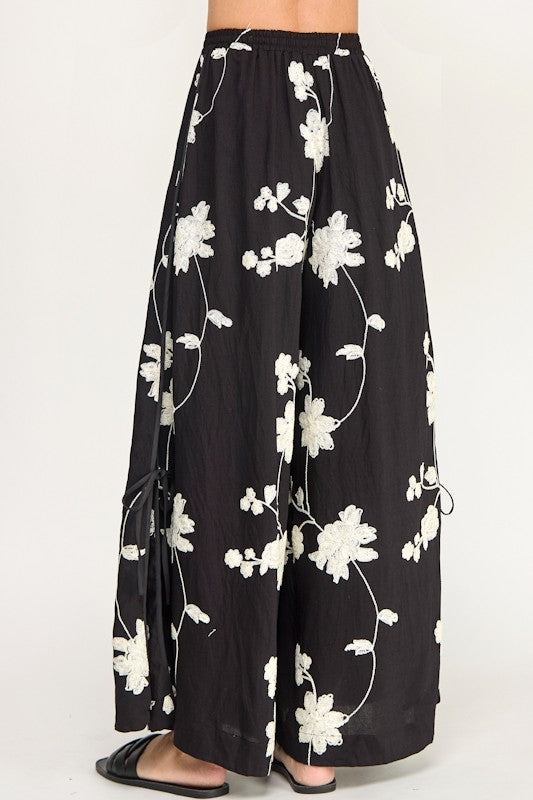 EMBROIDERED FLORAL SIDE TIE PANTS