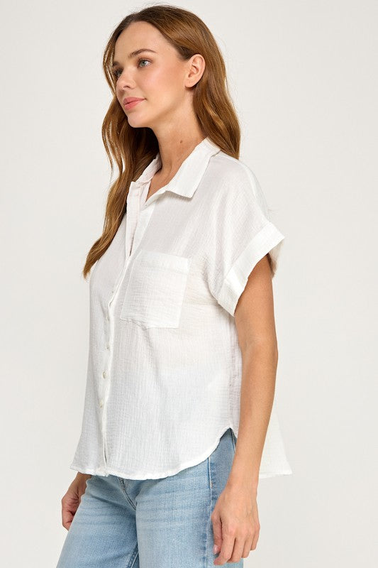 CUFFED SHORT SLEEVE TENCEL SHIRT