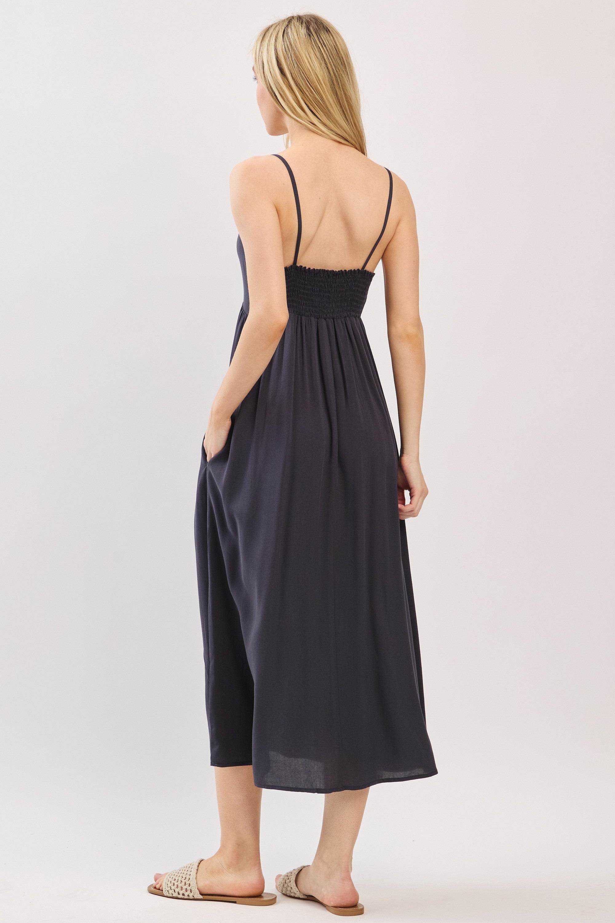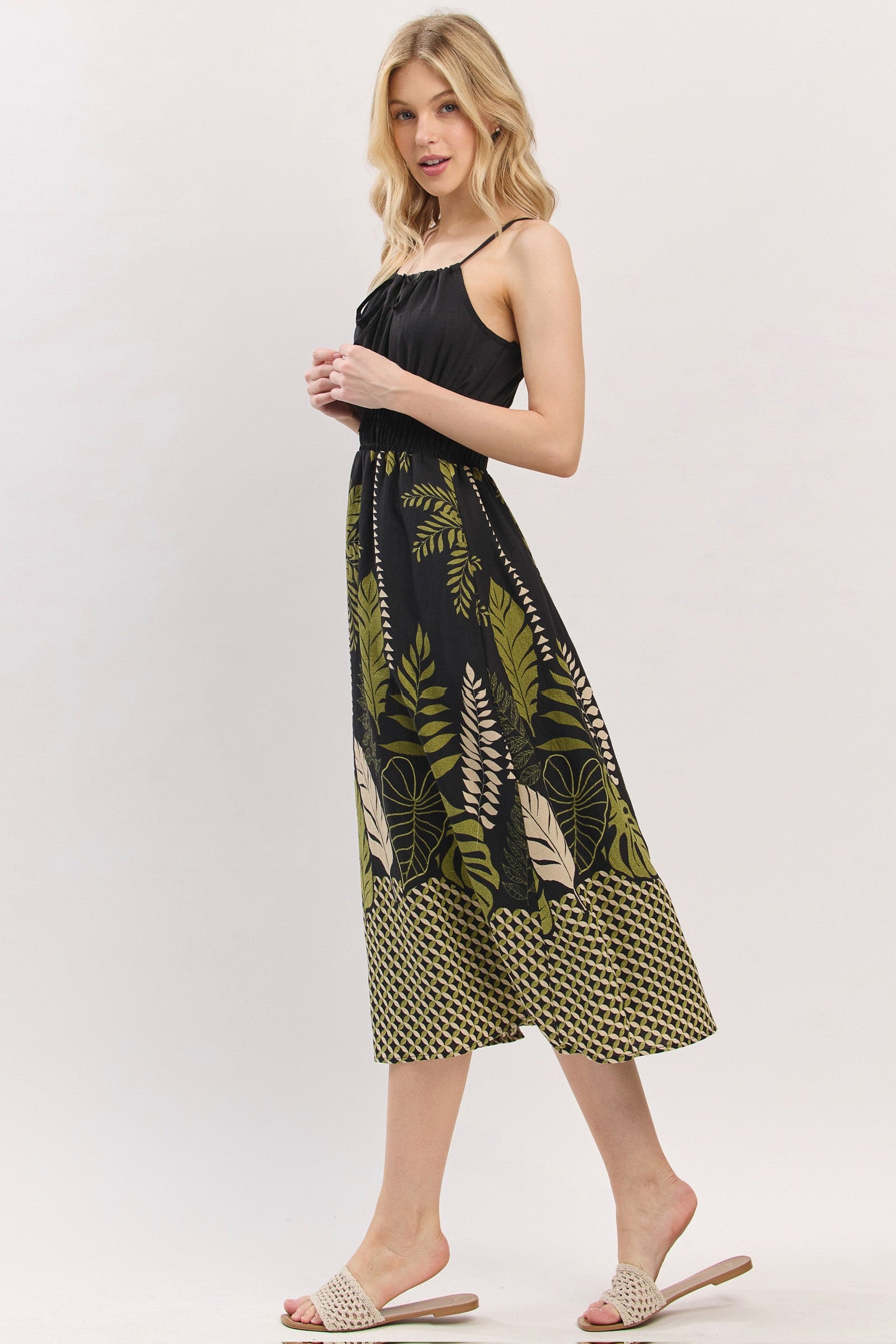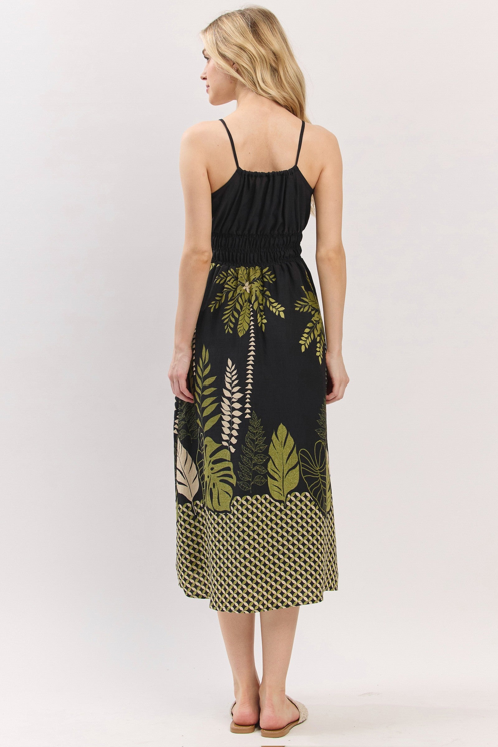 TROPICAL LEAVES SMOCKED WAIST SUNDRESS