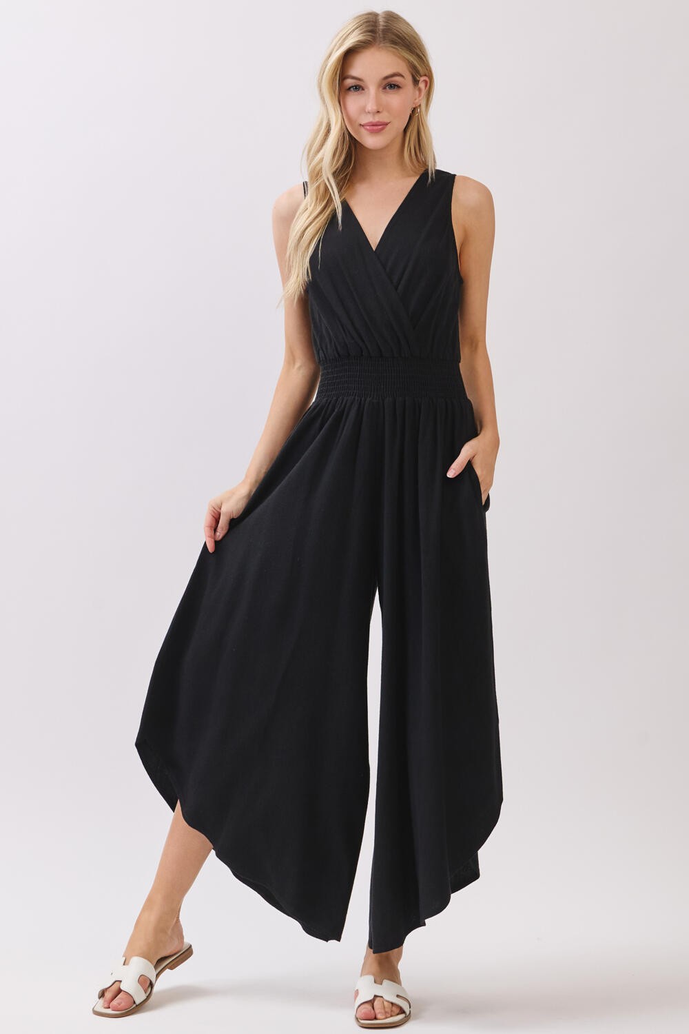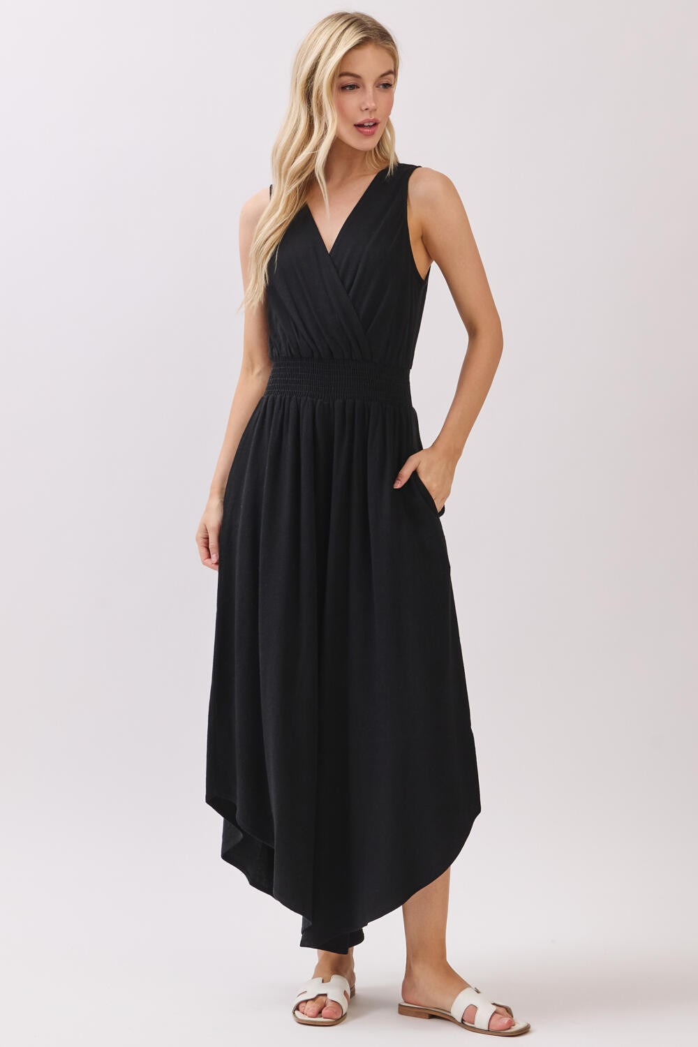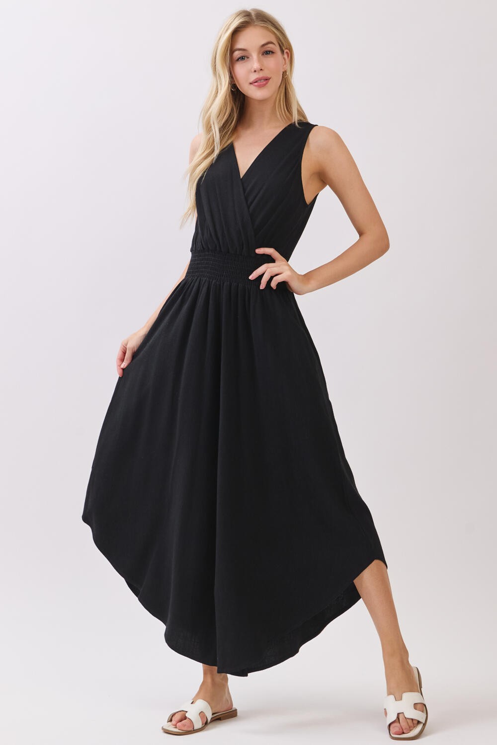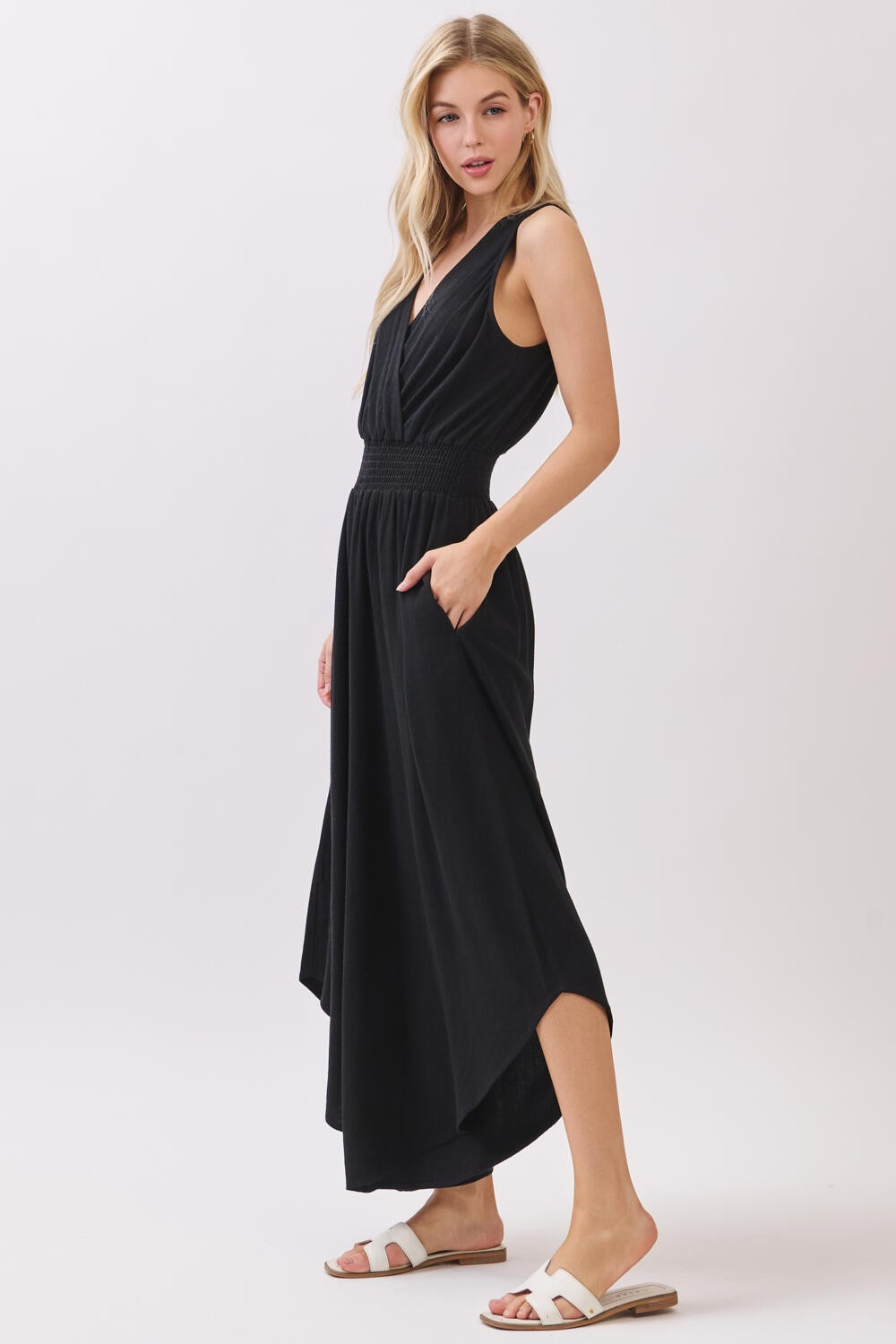 TROPICAL LEAVES SMOCKED WAIST SUNDRESS