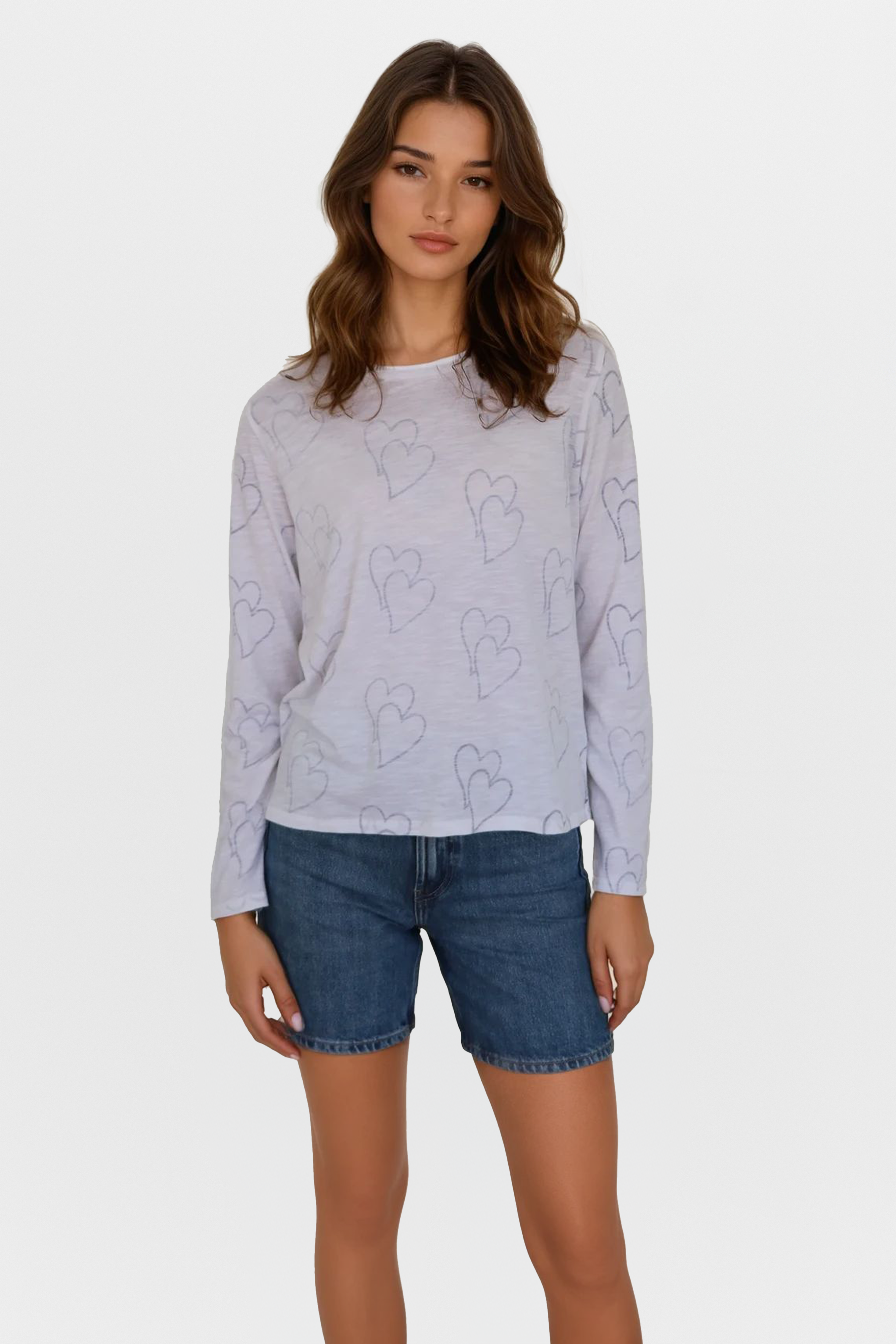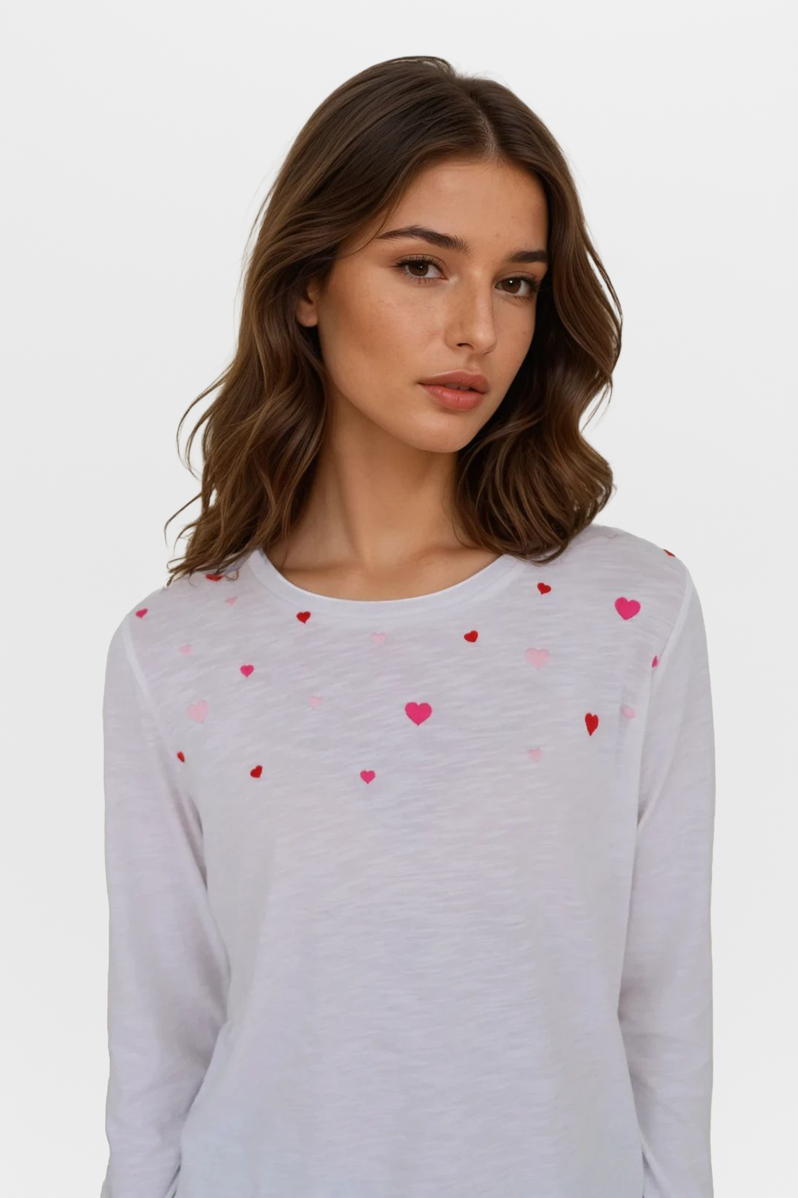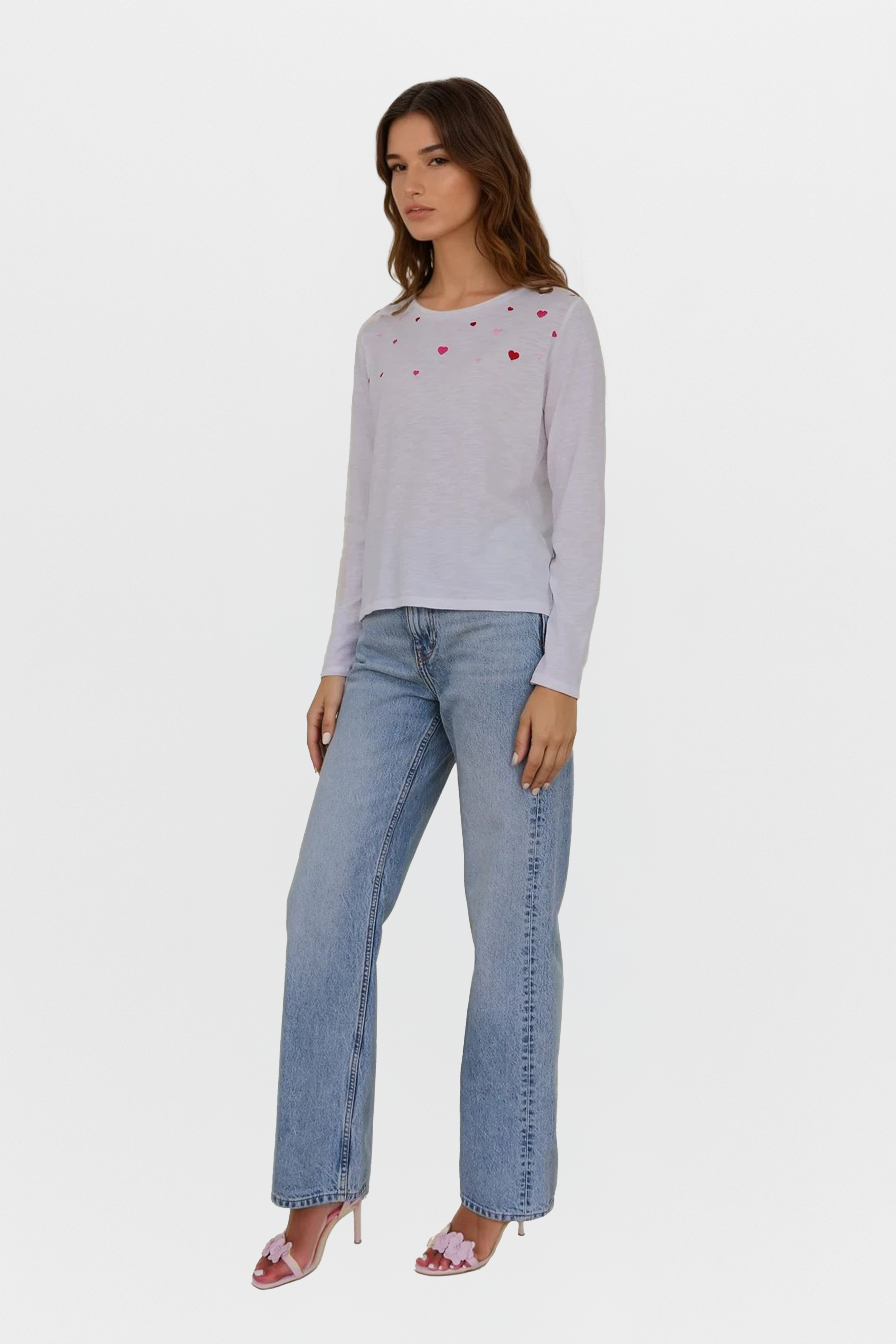 EMBROIDERED HEARTS LONG SLEEVE PERFECT TEE