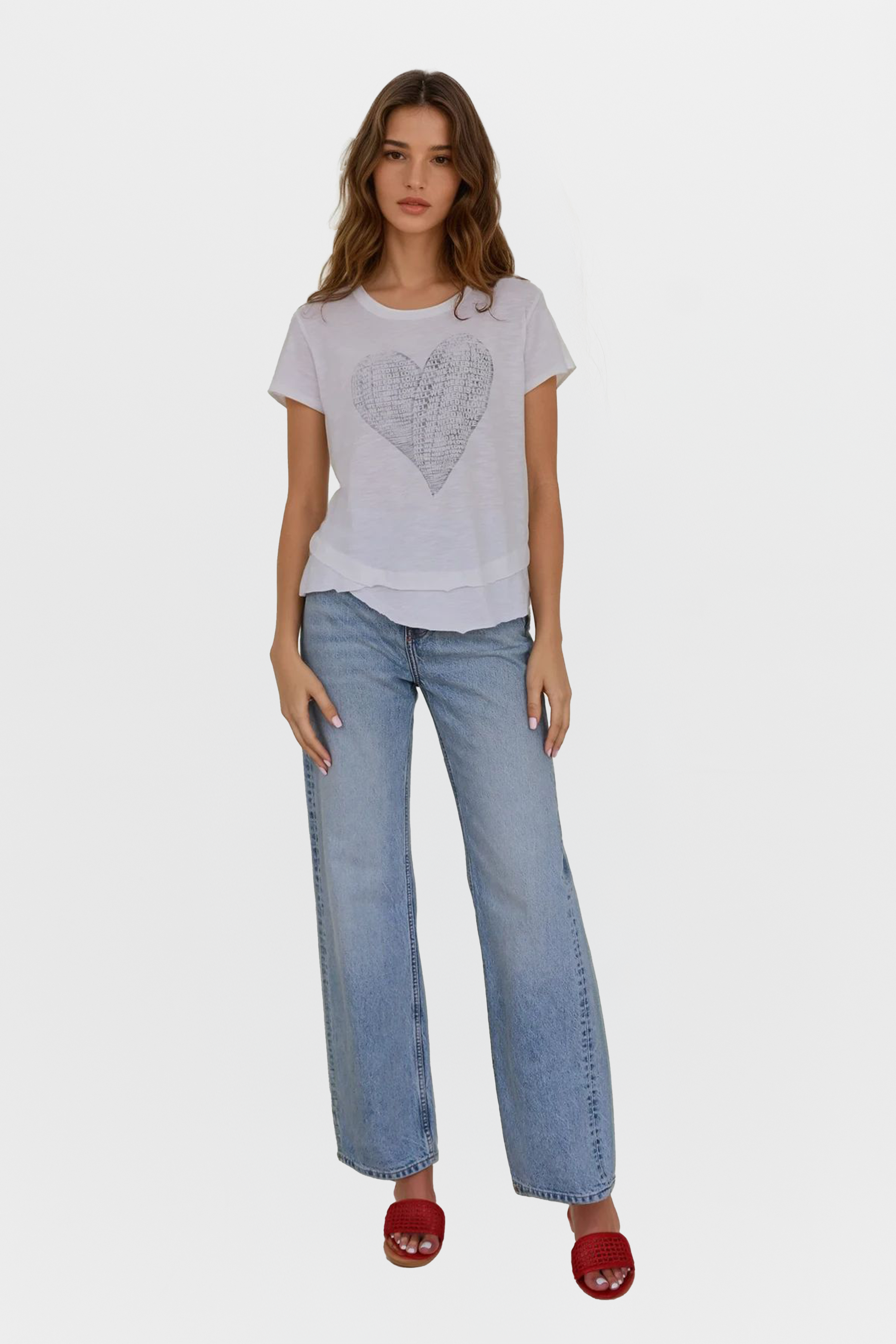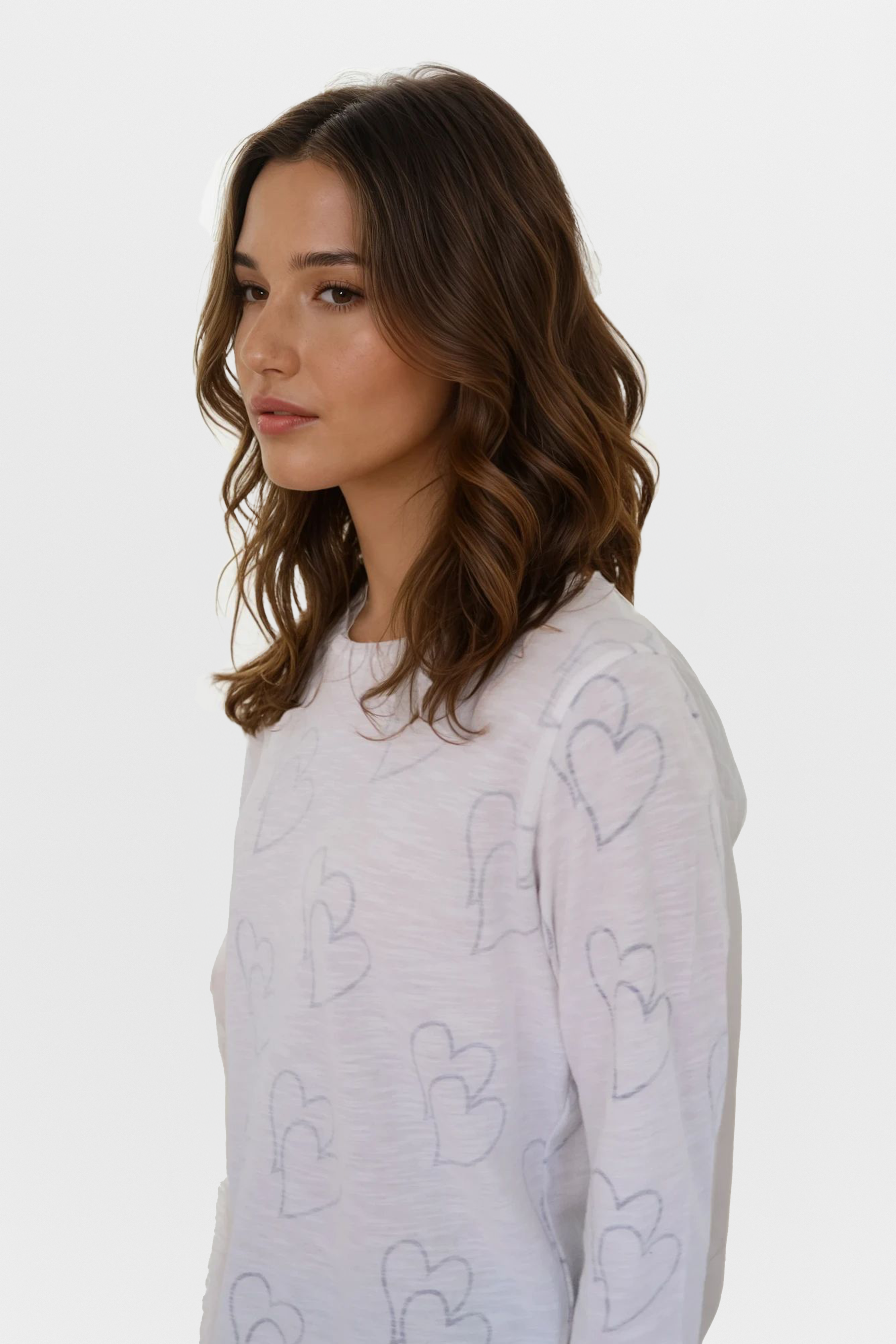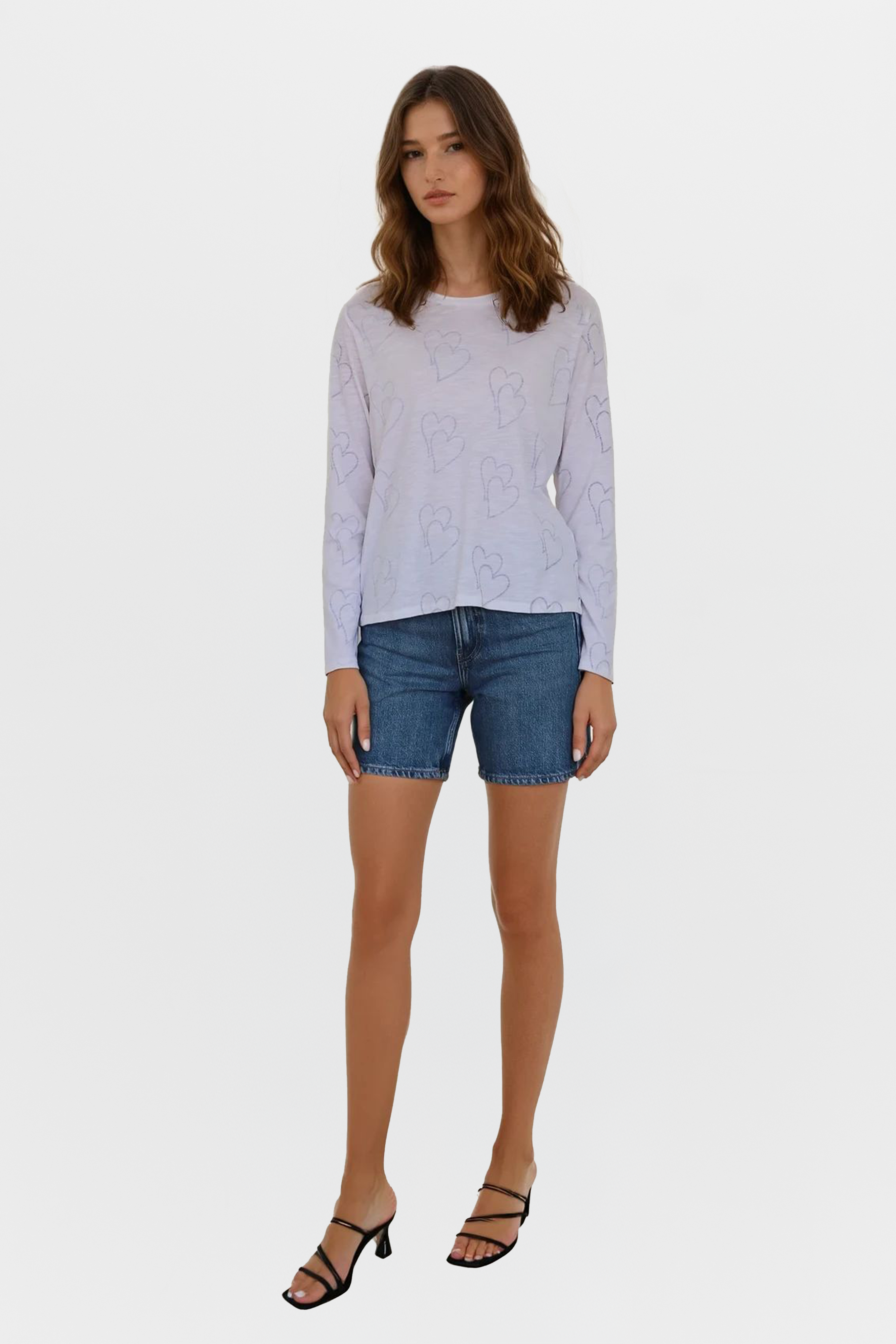 EMBROIDERED HEARTS LONG SLEEVE PERFECT TEE