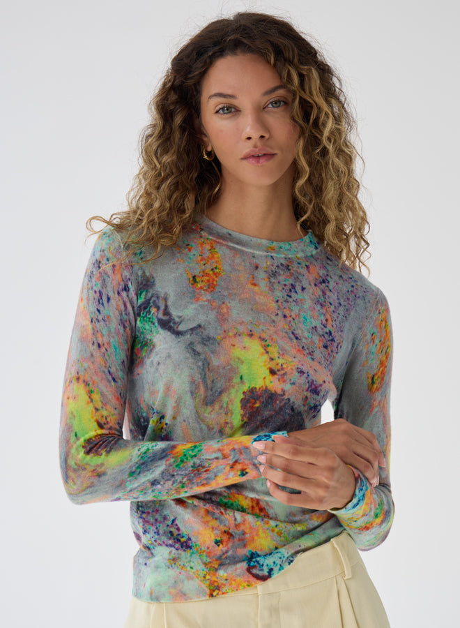 WATERCOLOUR PRINT RELAXED FIT SWEATER