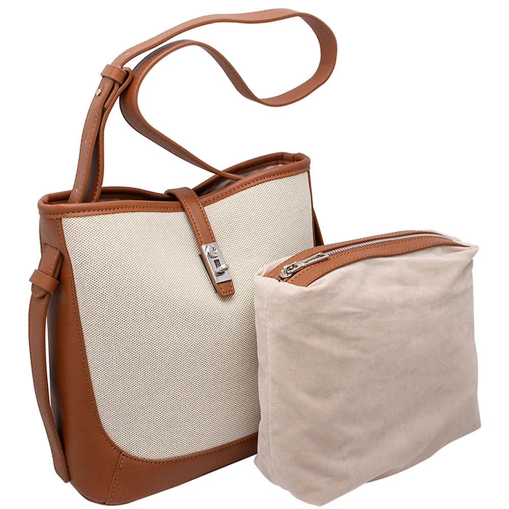 FAUX LEATHER TRIM SHOULDER BAG WITH CLASP