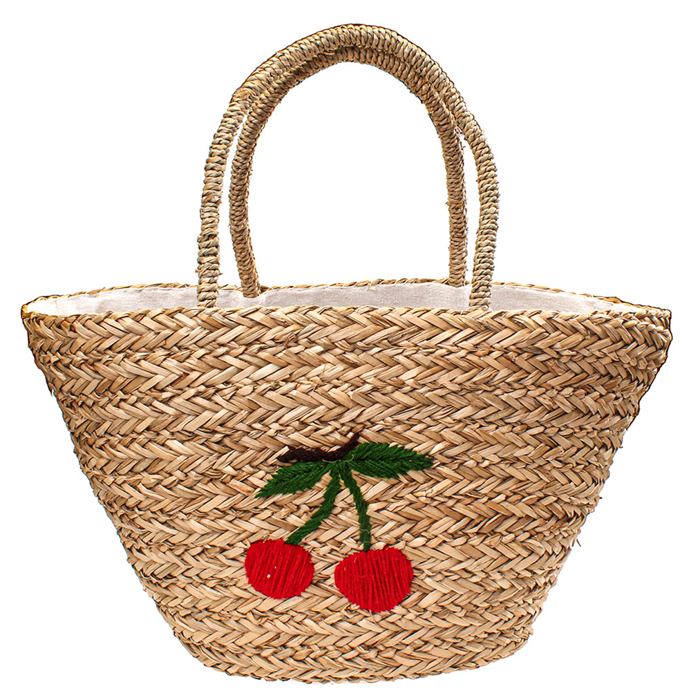 LARGE CHERRY STRAW TOTE BAG