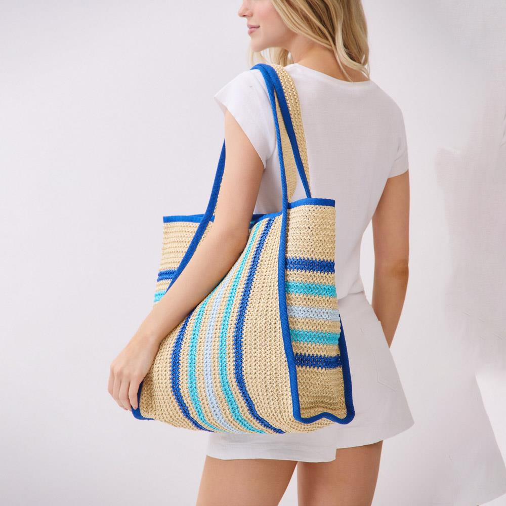 TRIMMED STRIPED STRAW TOTE BAG