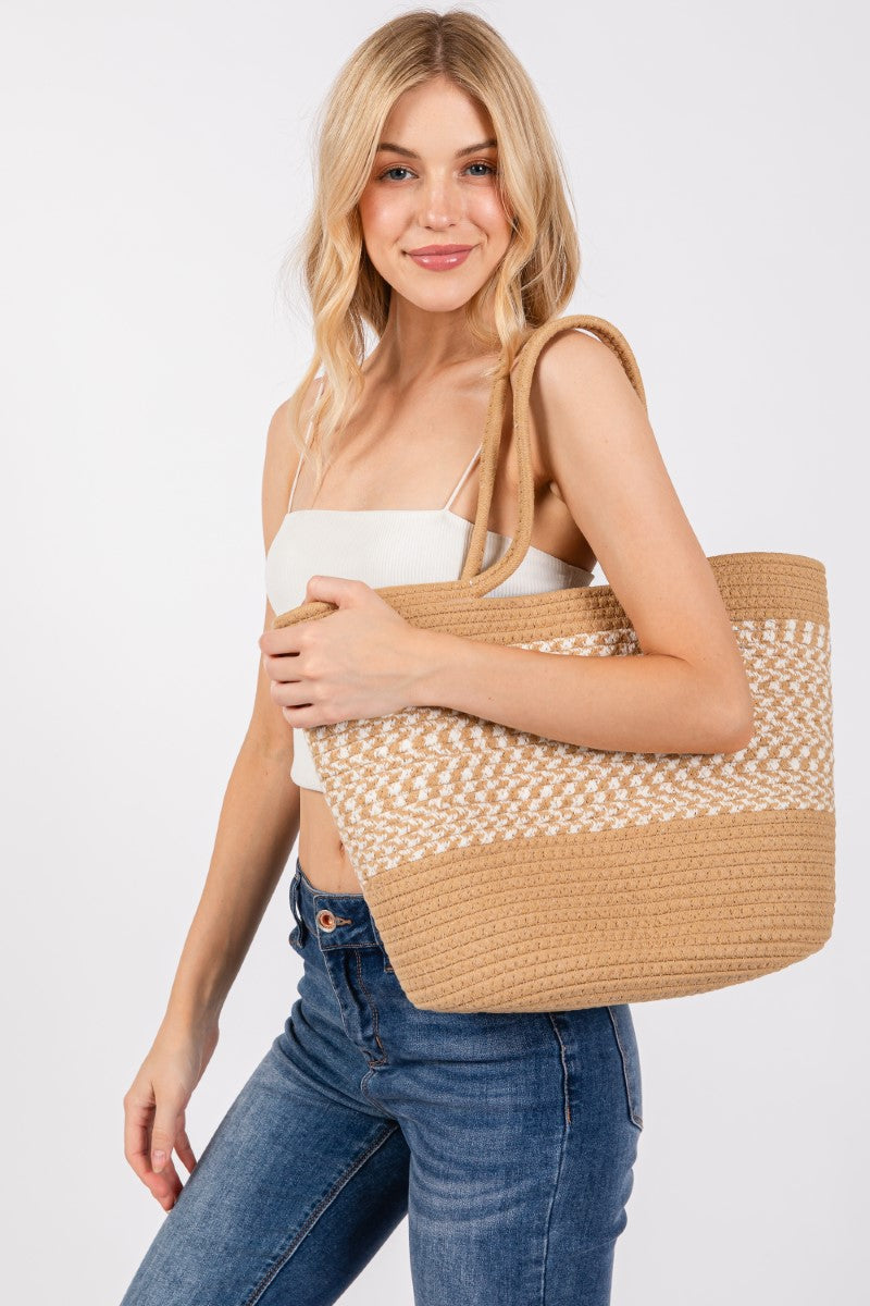 BRAIDED PANEL TOTE BAG