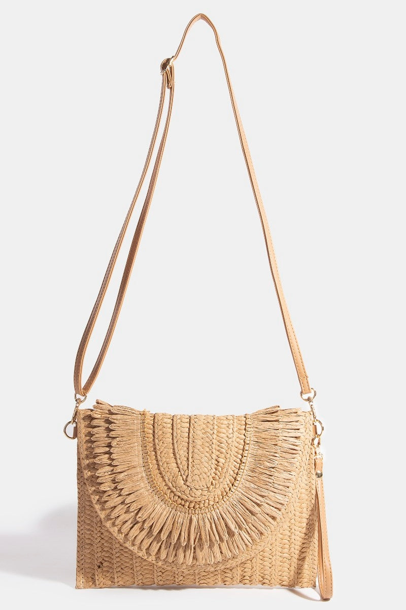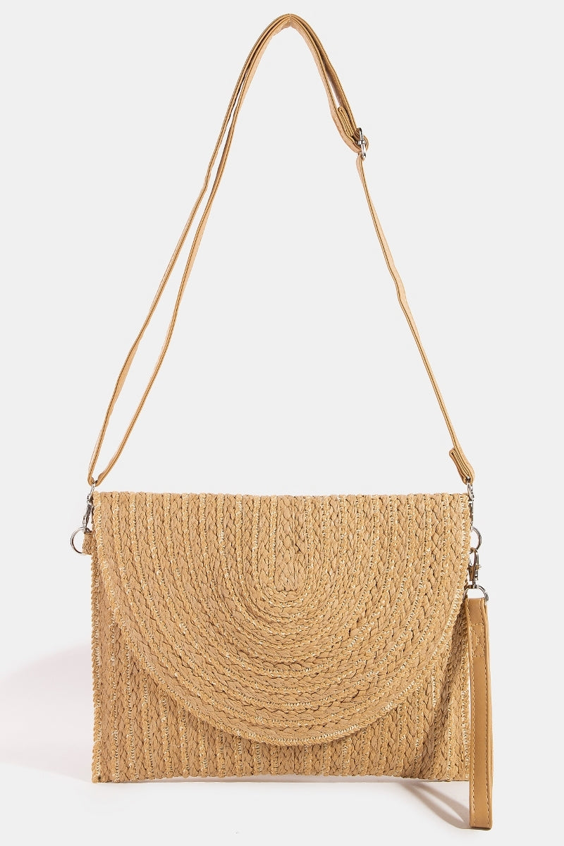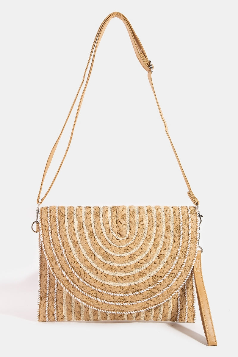 OPEN WEAVE STRIPE CURVED FLAP CLUTCH