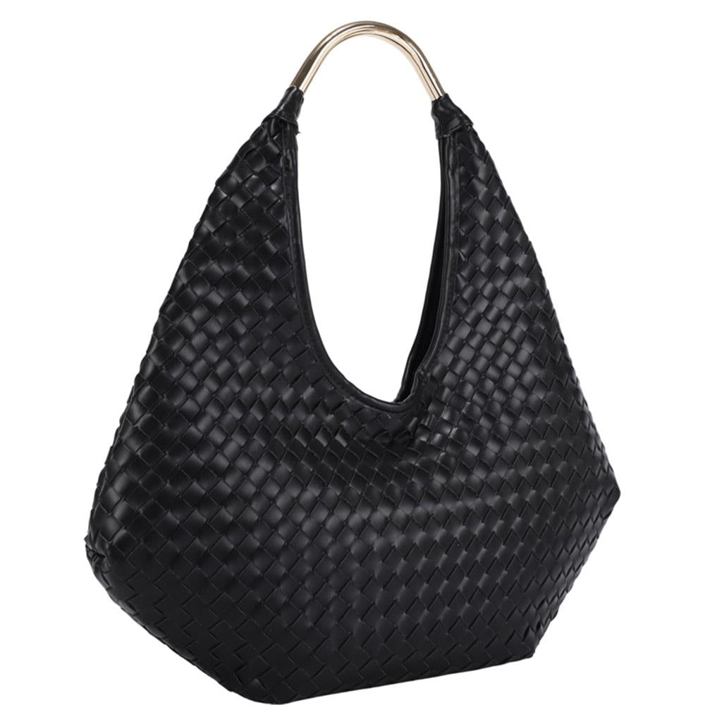 BAR HANDLE BASKETWEAVE HOBO BAG