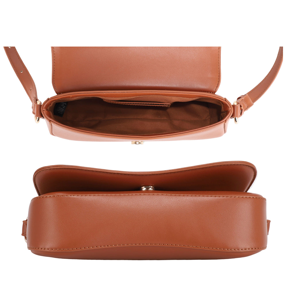TWO TONE CURVED FLAP SHOULDER BAG