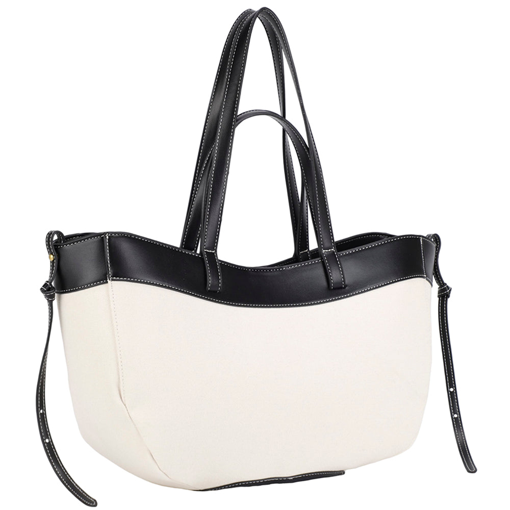 FAUX LEATHER TRIM TOTE BAG