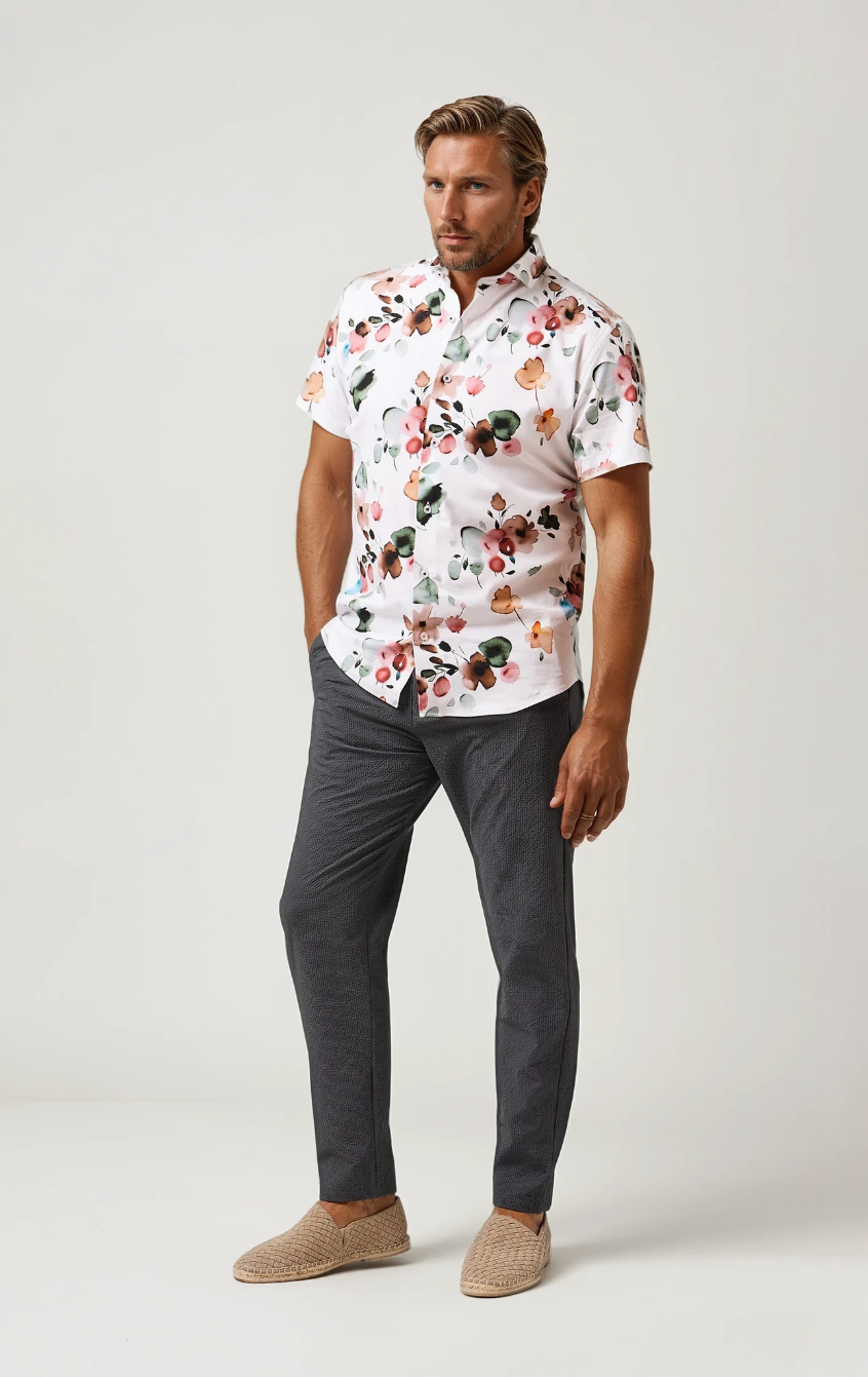 SHORT SLEEVE TROPICAL FLORAL CAMP COLLAR SHIRT