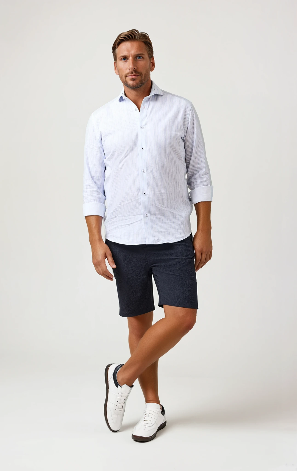 BHABAN VERTICAL STRIPE SHORT SLEEVE SHIRT