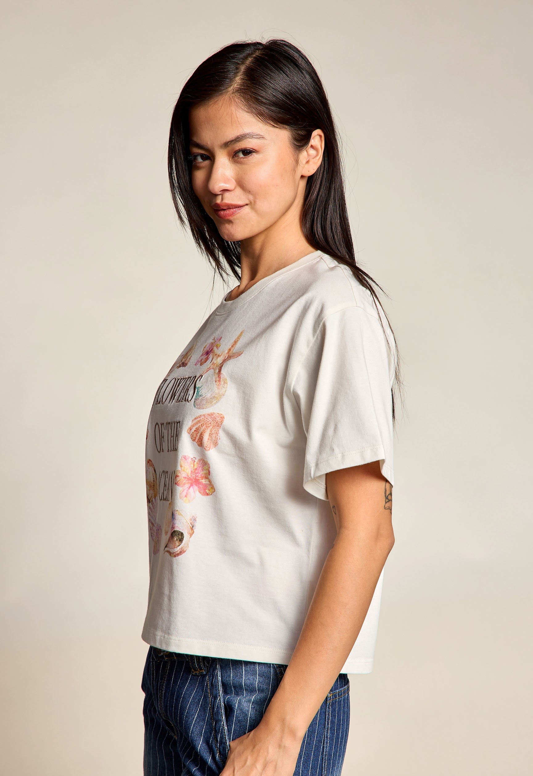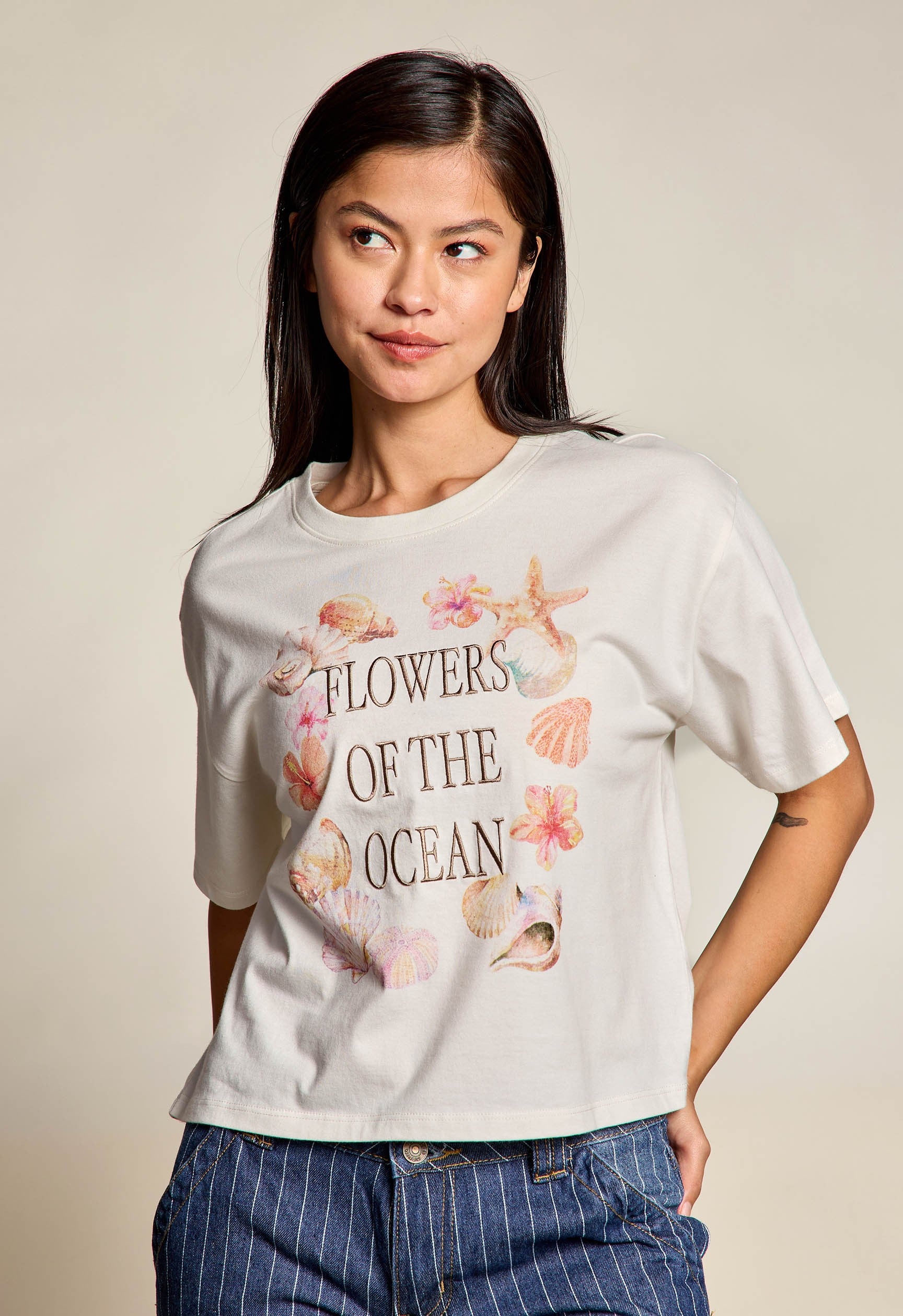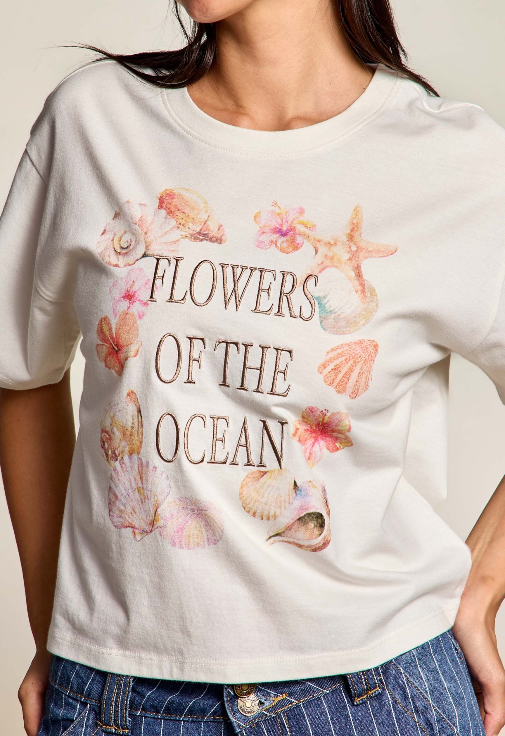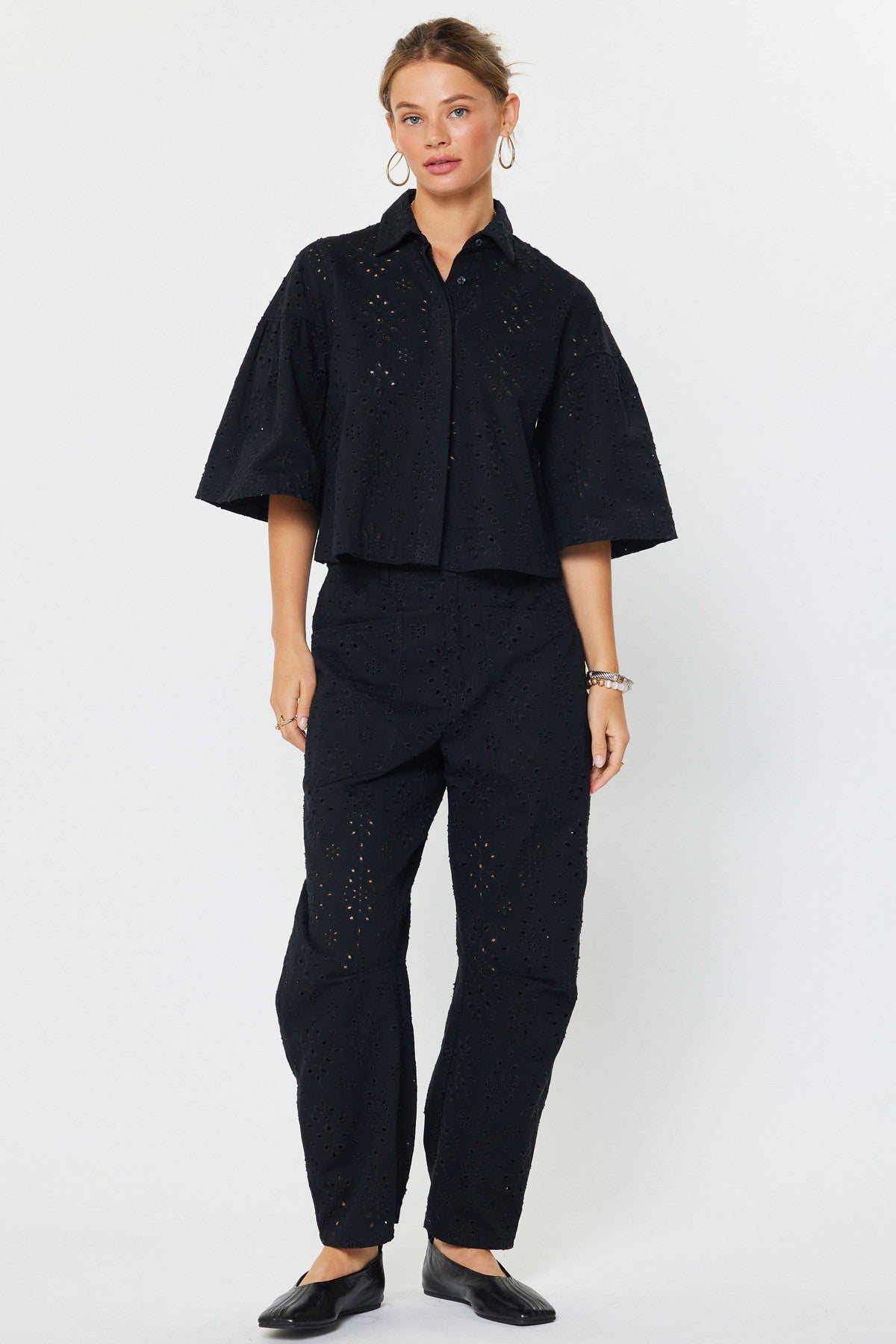 CROPPED EYELET SHORT SLEEVE SHIRT