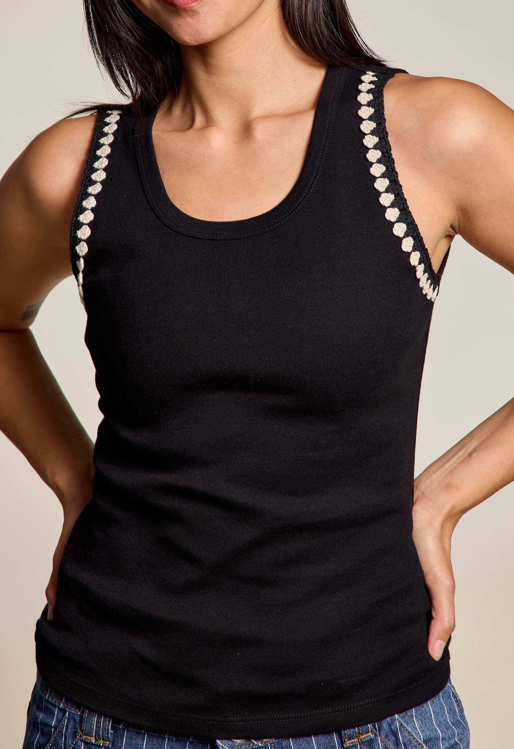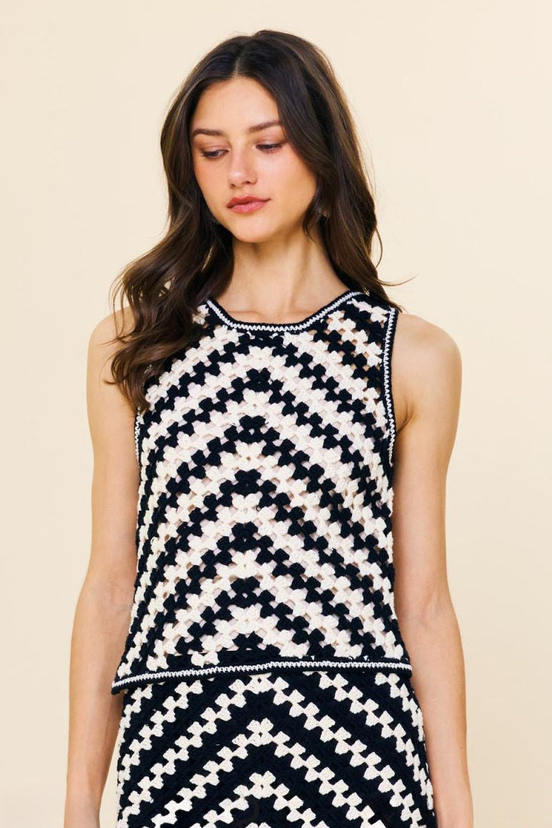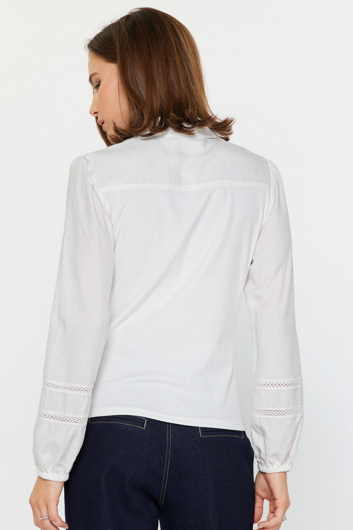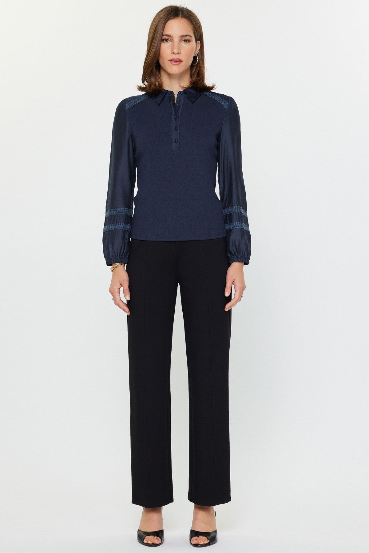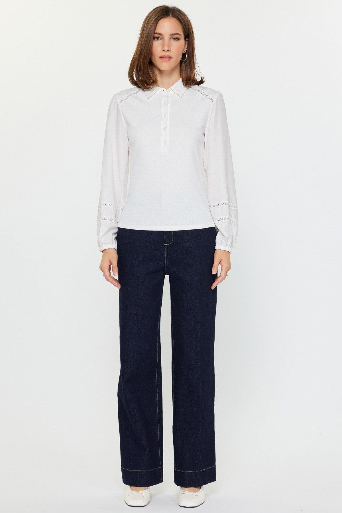 LACE TRIM MIXED MEDIA POLO COLLAR TOP