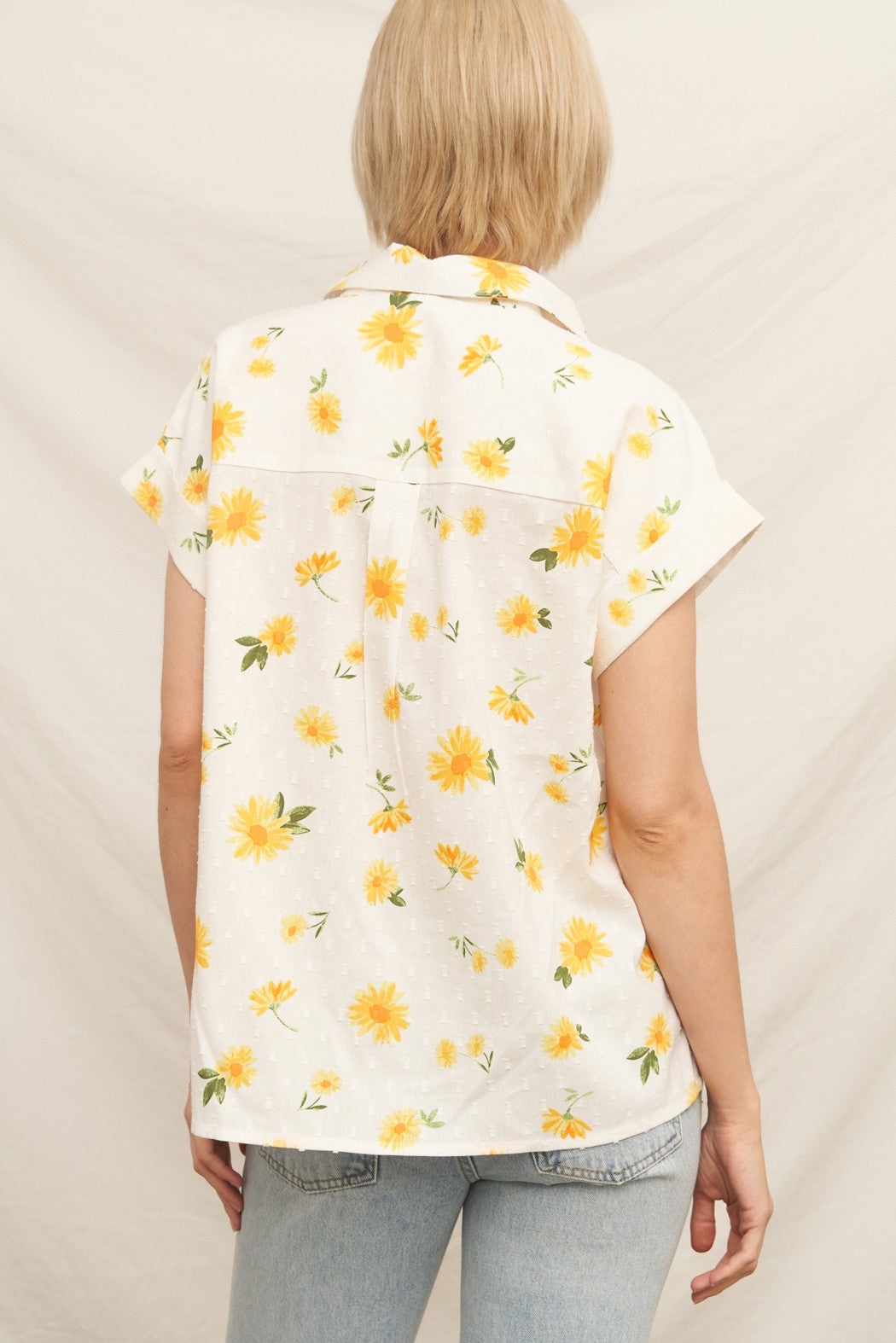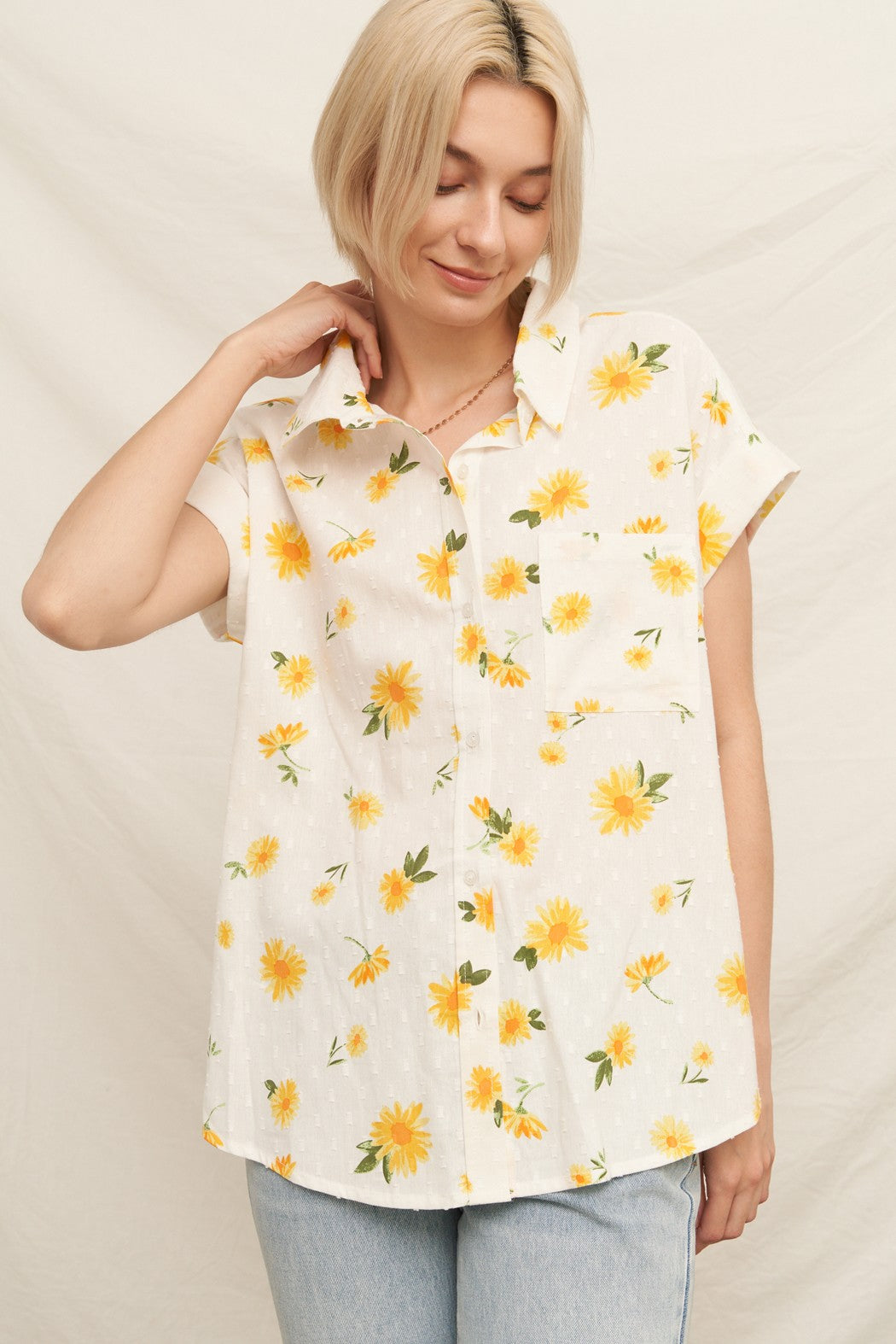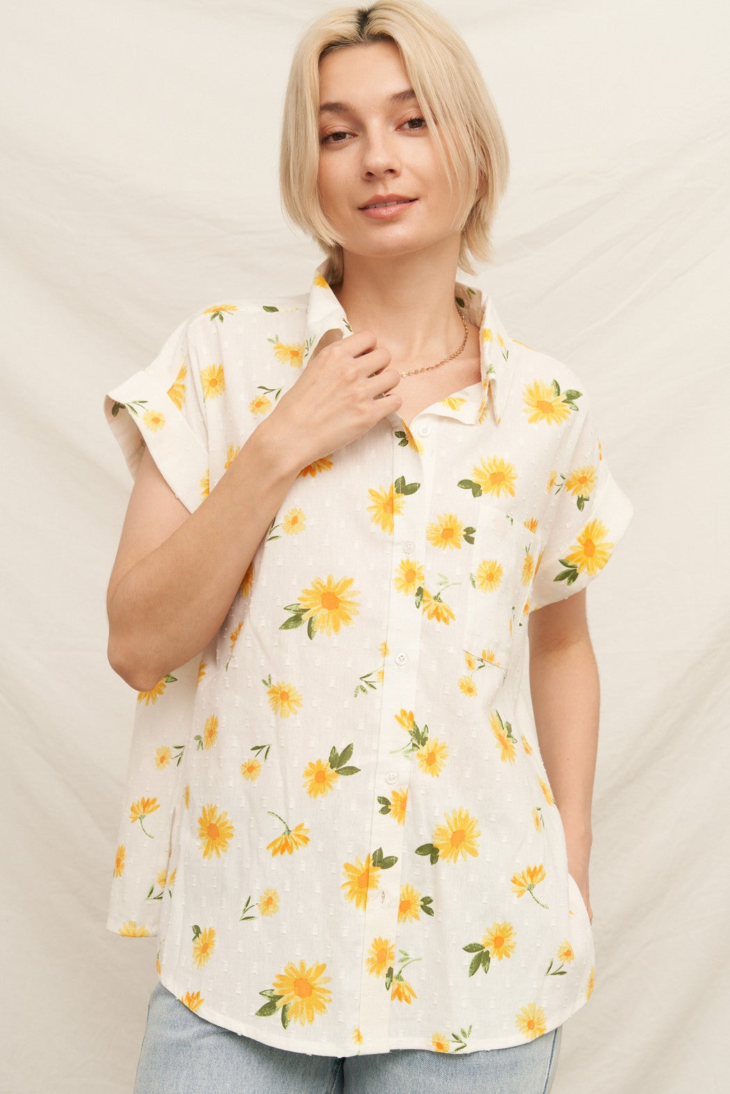 FLORAL PRINT TUFTED SHORT SLEEVE SHIRT