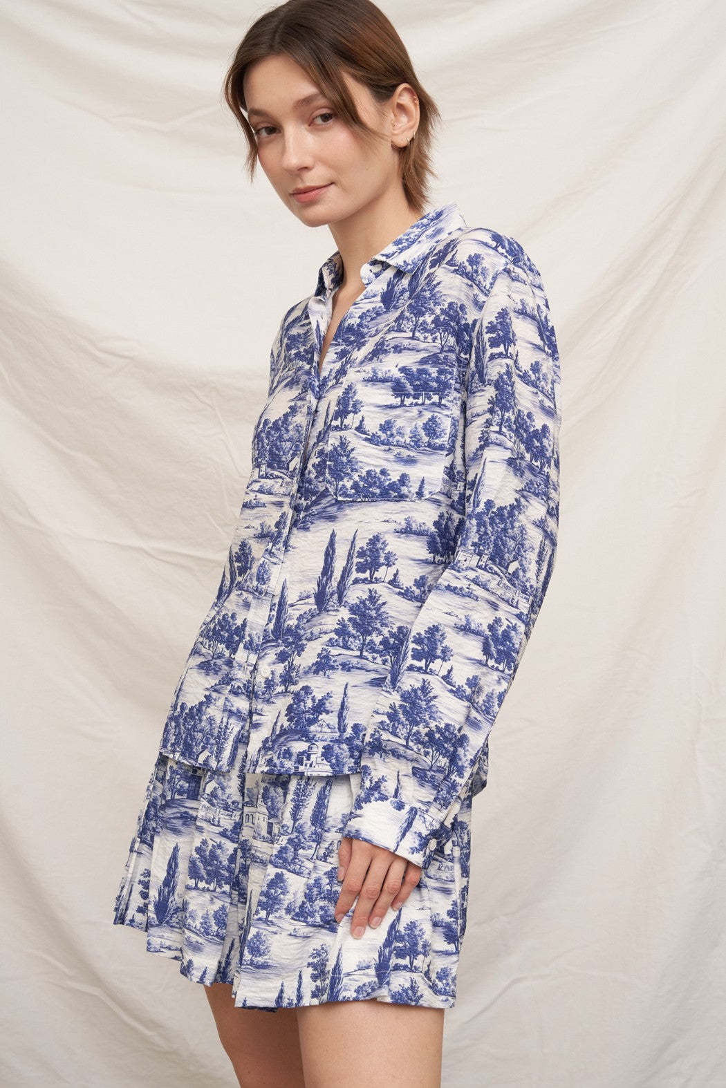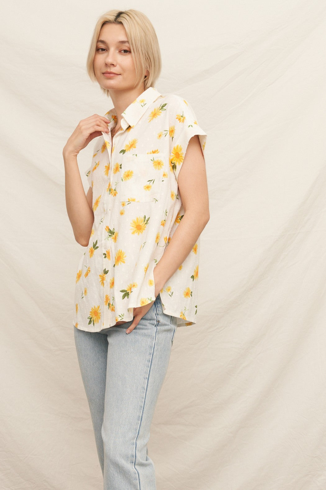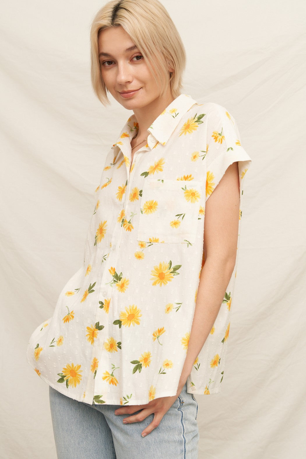 FLORAL PRINT TUFTED SHORT SLEEVE SHIRT
