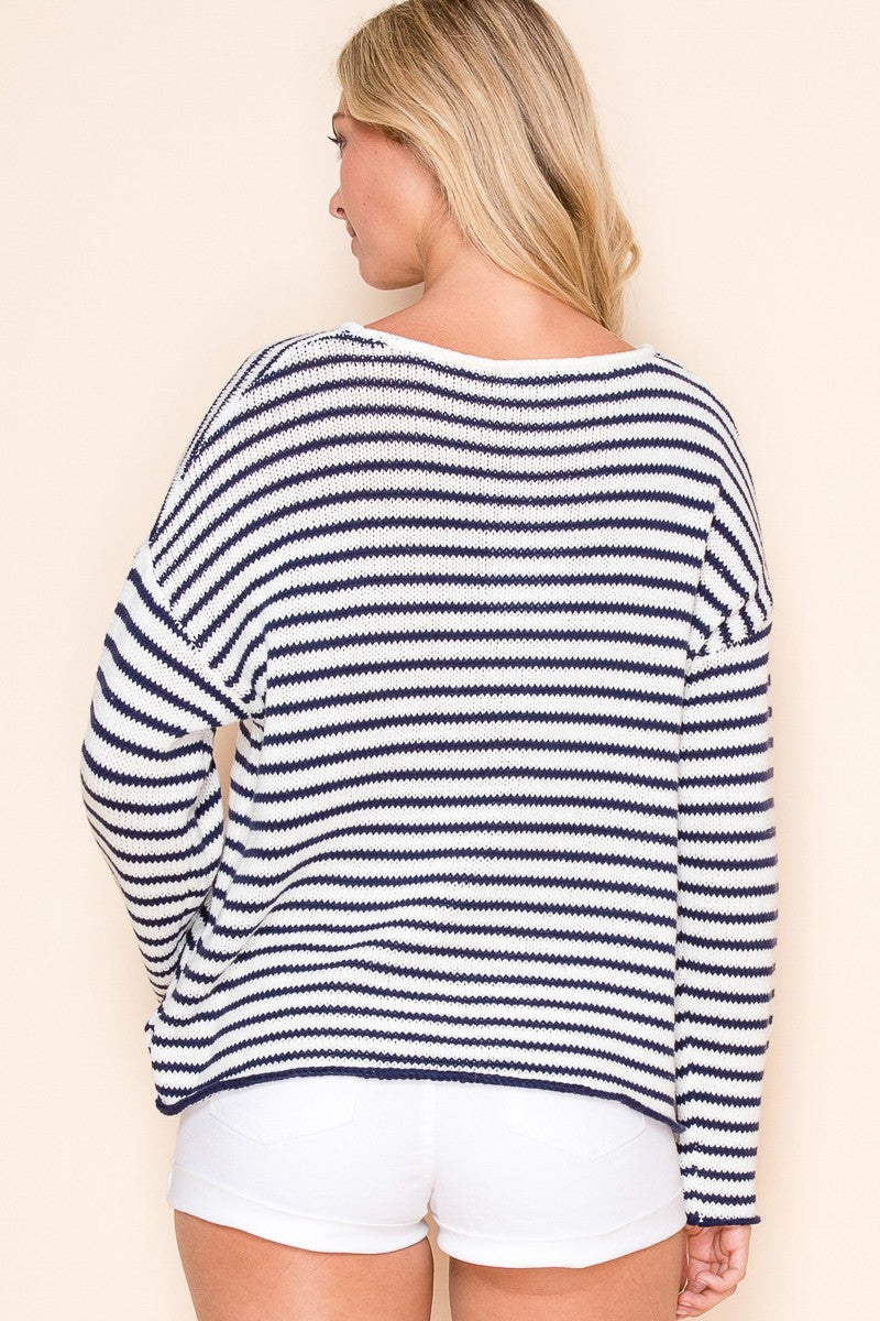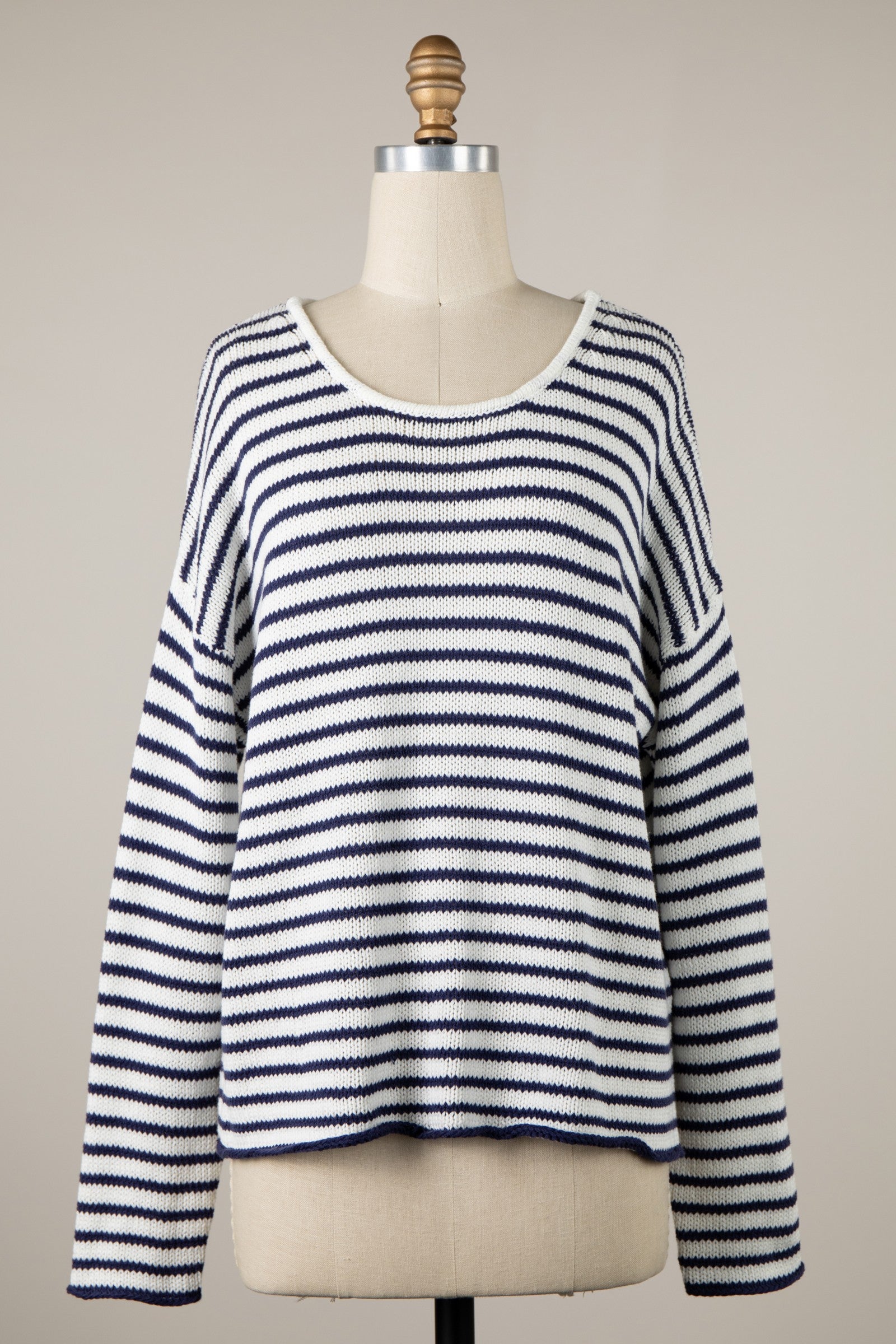 TRIPLE STRIPE SHORT SLEEVE SWEATER